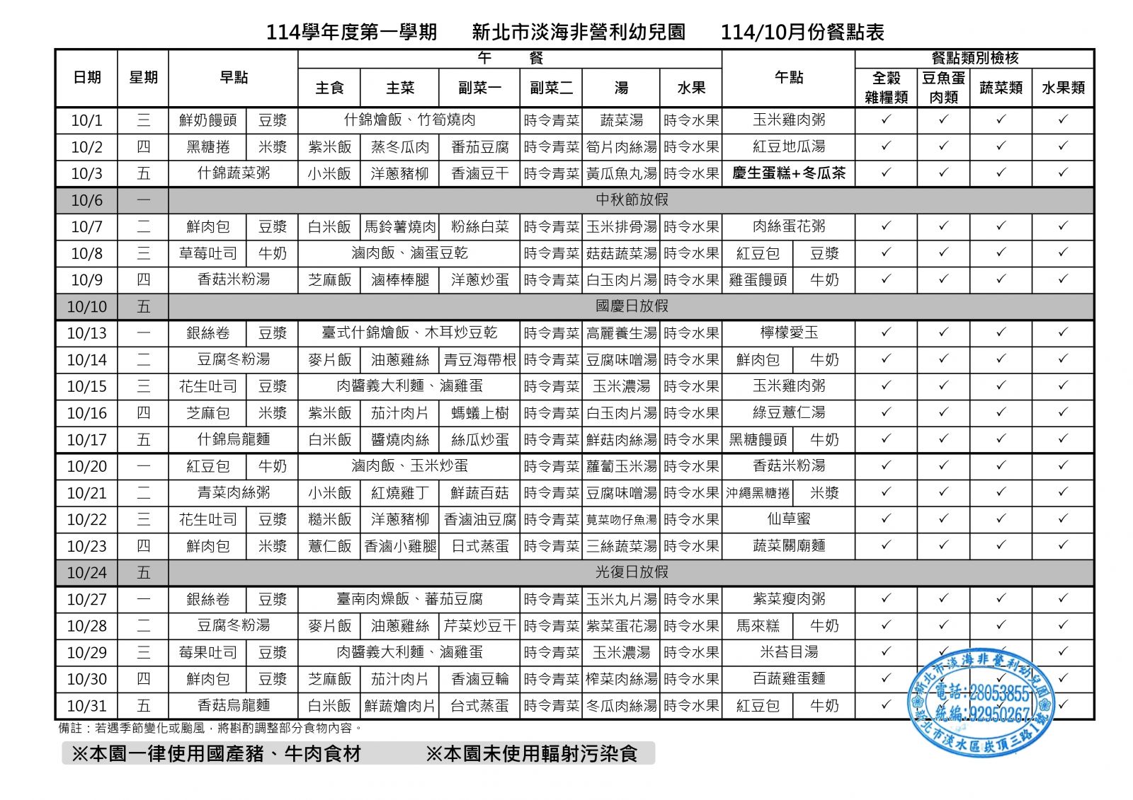 114/10月菜單