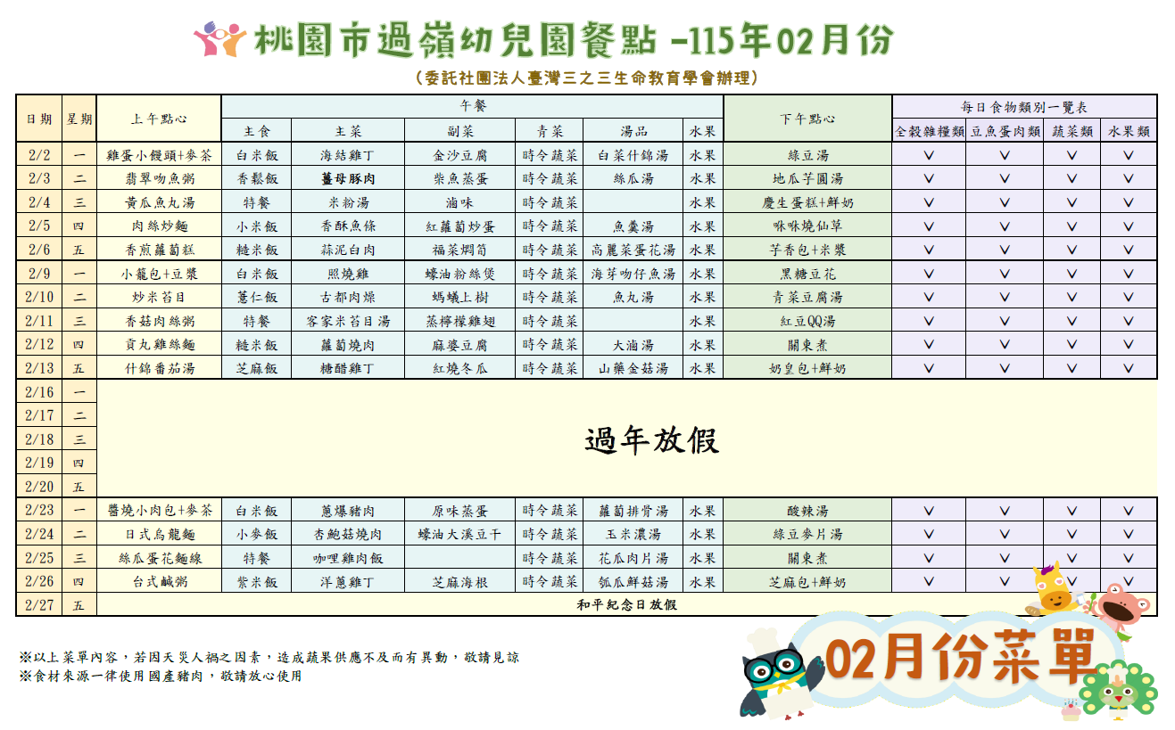 113學年度第二學期 菜單公告