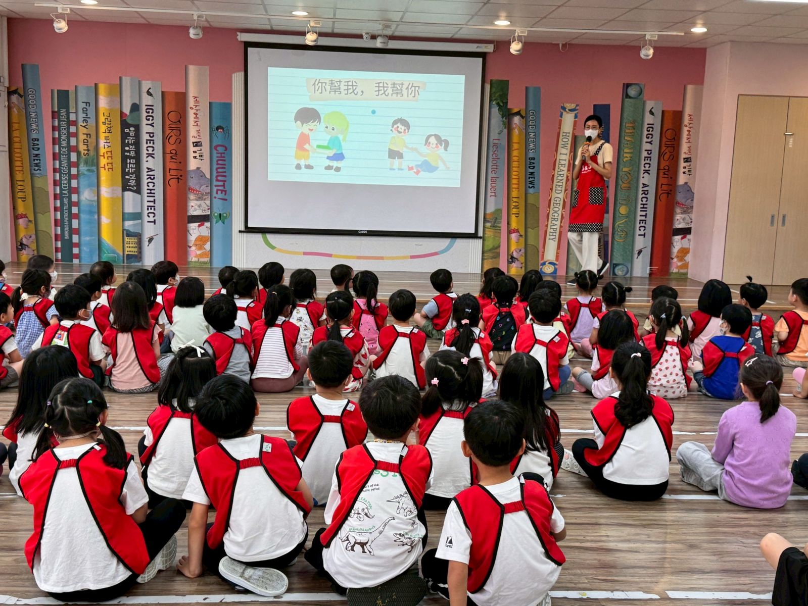 本次品德教育以「你幫我,我幫你」為主題,透過PPT引導幼兒認識助人行為,並結合影片與繪本,讓孩子理解幫助他人的意義與帶來的正向感受。活動中安排有獎徵答,幼兒踴躍參與、分享想法,展現良好學習態度。最後以音樂律動作結,讓孩子在愉快氛圍中深化助人觀念,培養關懷與合作的品德。