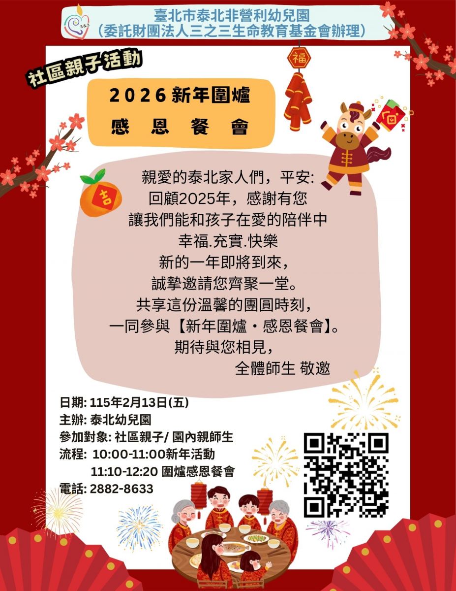 2/13 (五) 社區親子活動▶新年圍爐・感恩餐會