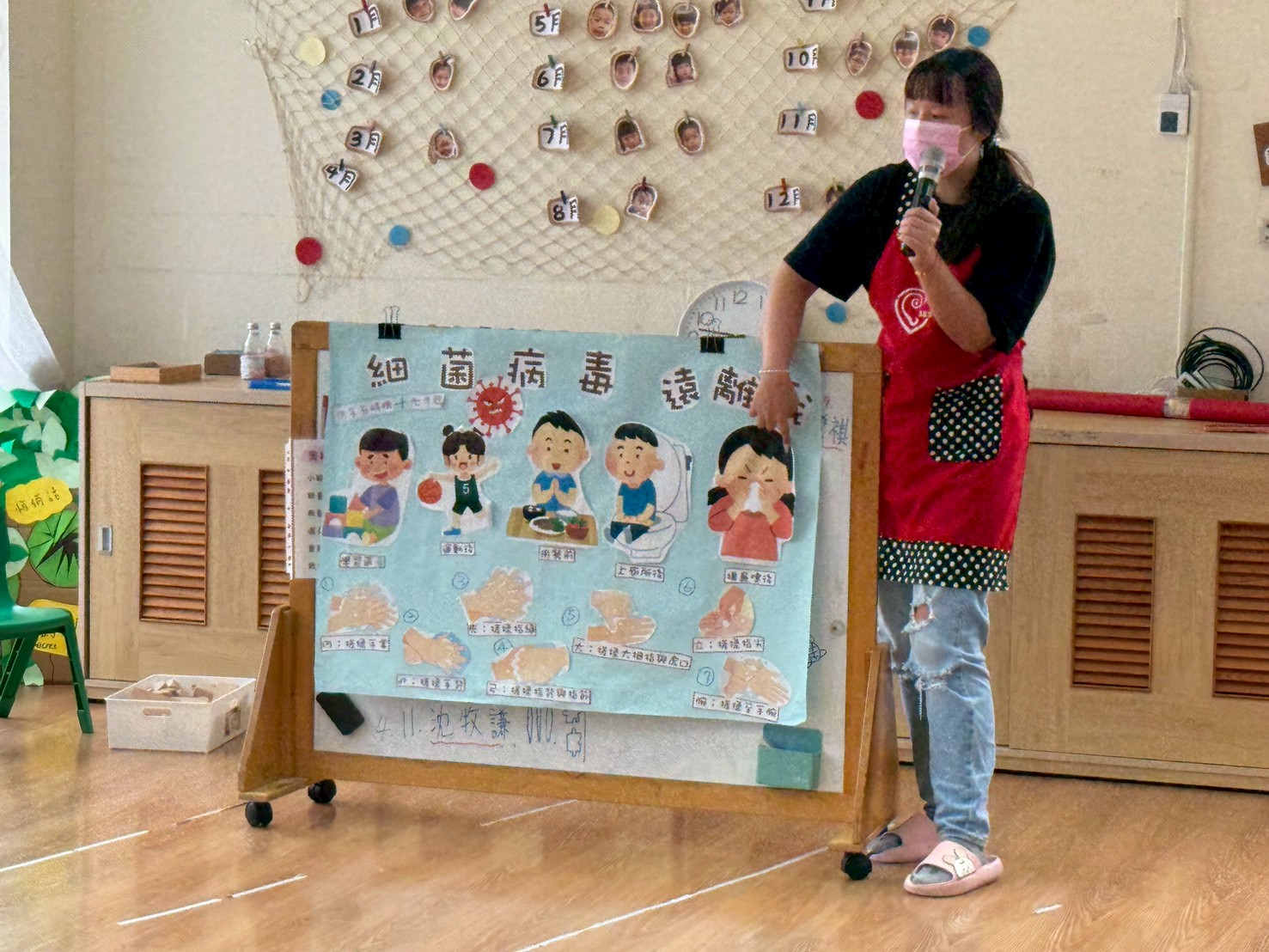 透過生動的衛教宣導,孩子學習正確洗手、戴口罩及良好生活習慣,讓細菌病毒遠離自己,從小建立健康保護力。