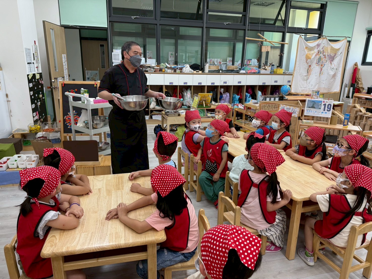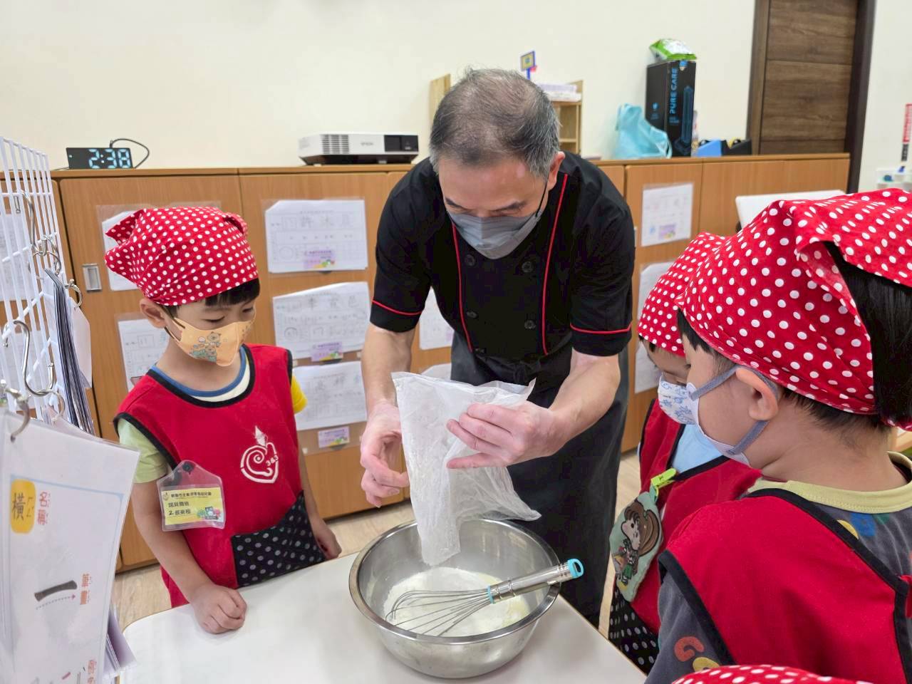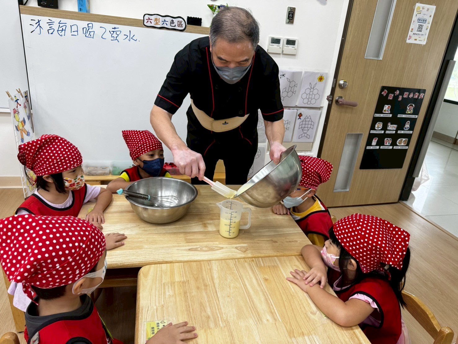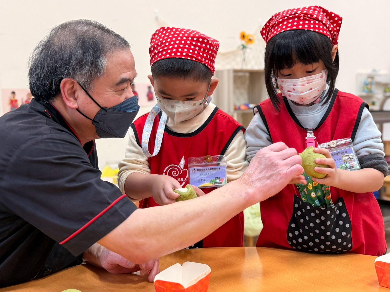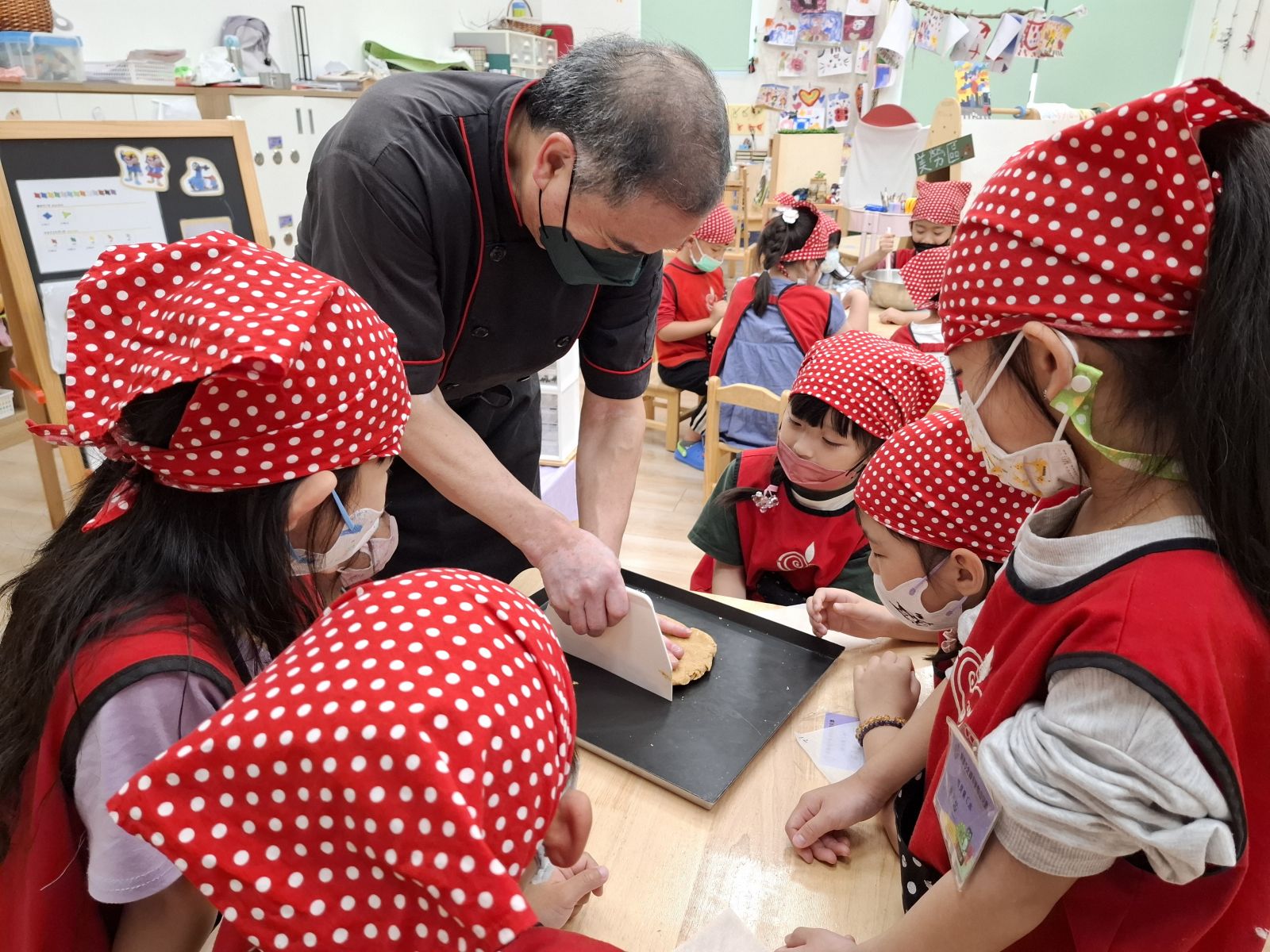 這個月是月圓人團圓的中秋節~所以由廚師叔叔帶領孩子做鳳梨酥,