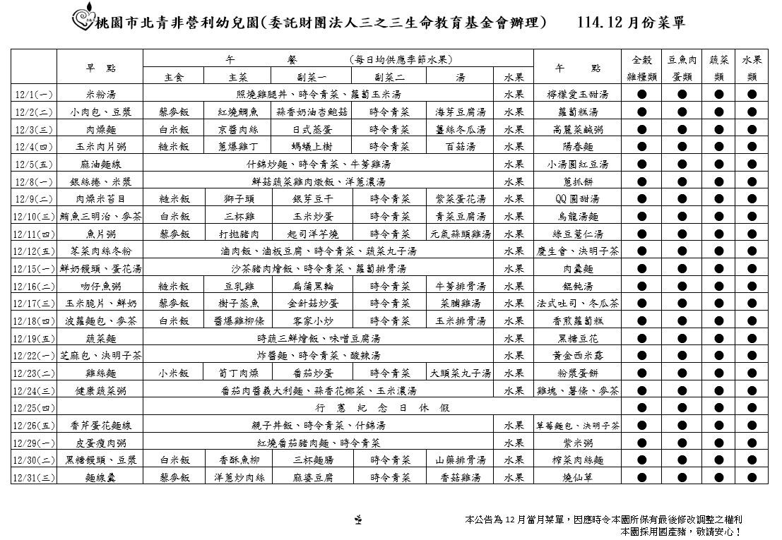 12月餐點表