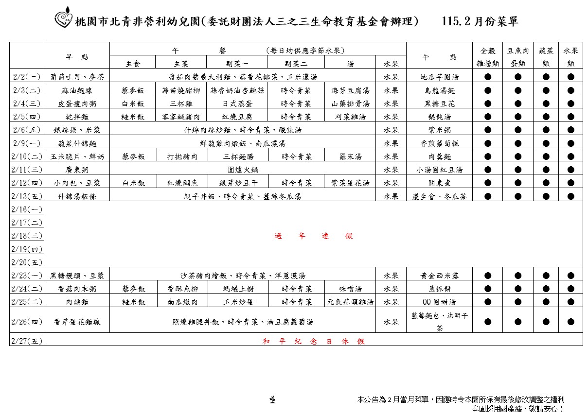 2月餐點表
