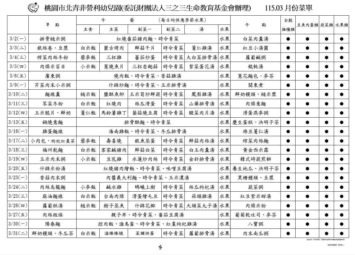 3月餐點表