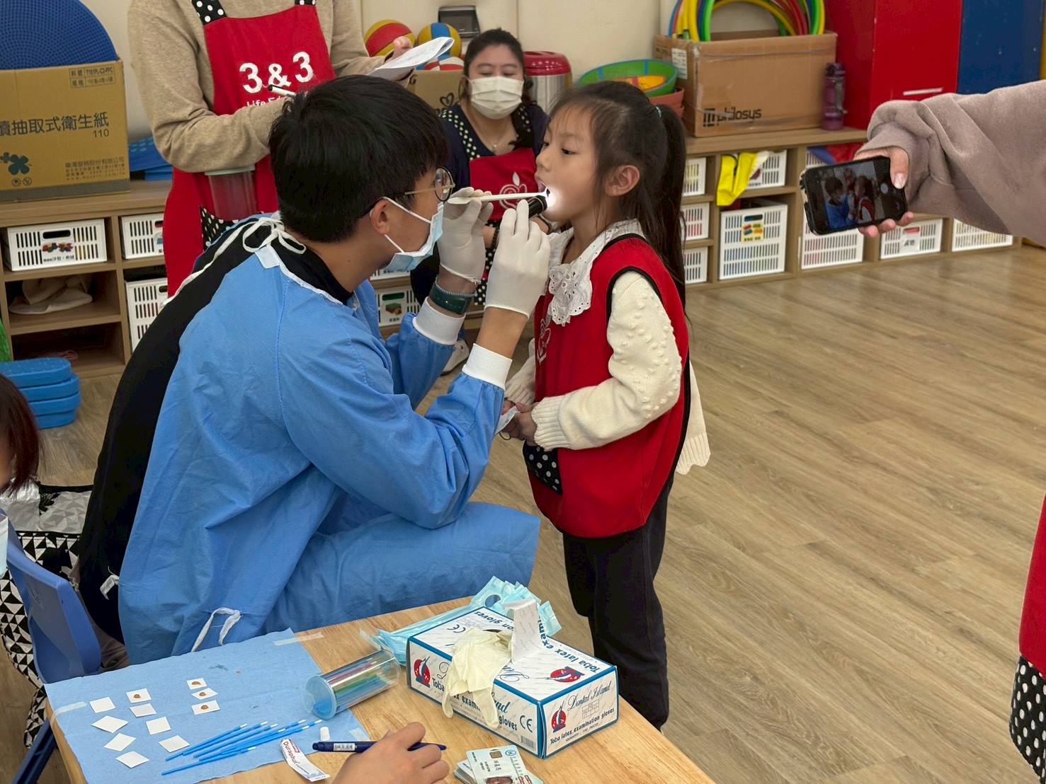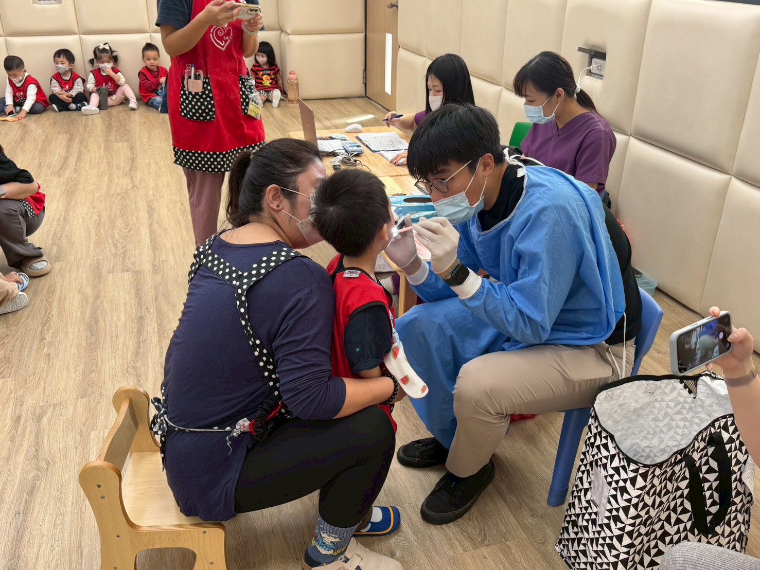 今天由牙醫團隊到園進行塗氟服務,協助孩子檢查口腔並塗佈氟膏,強化牙齒、預防蛀牙。活動全程有老師陪同,孩子們都能安心完成。