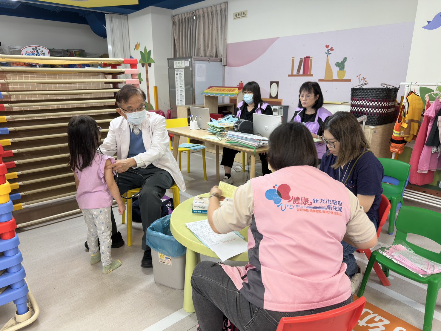 謝謝衛生所的醫生叔叔和護士阿姨來幫我們健康檢查