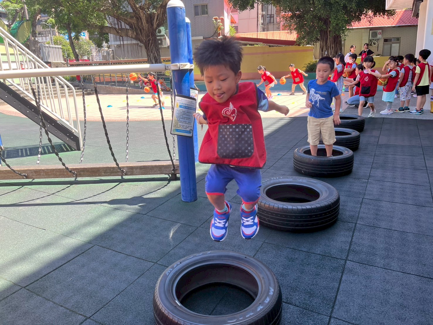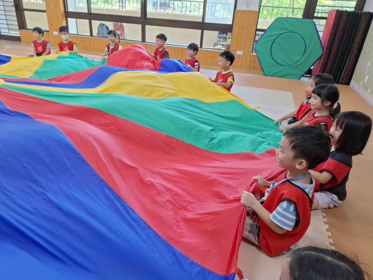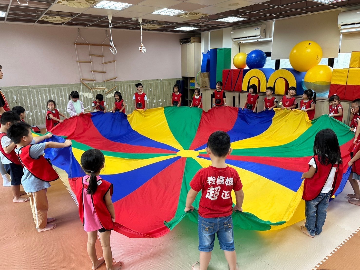 本月份邀請孩子進行各項動作來提升孩子在執行時的敏捷性,藉由氣球傘、輪胎、球類器材來設計各個有趣的關卡讓孩子們挑戰喔!