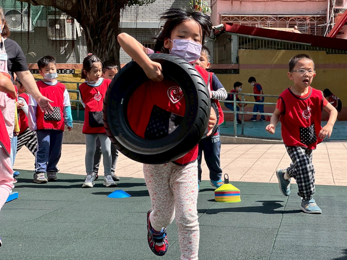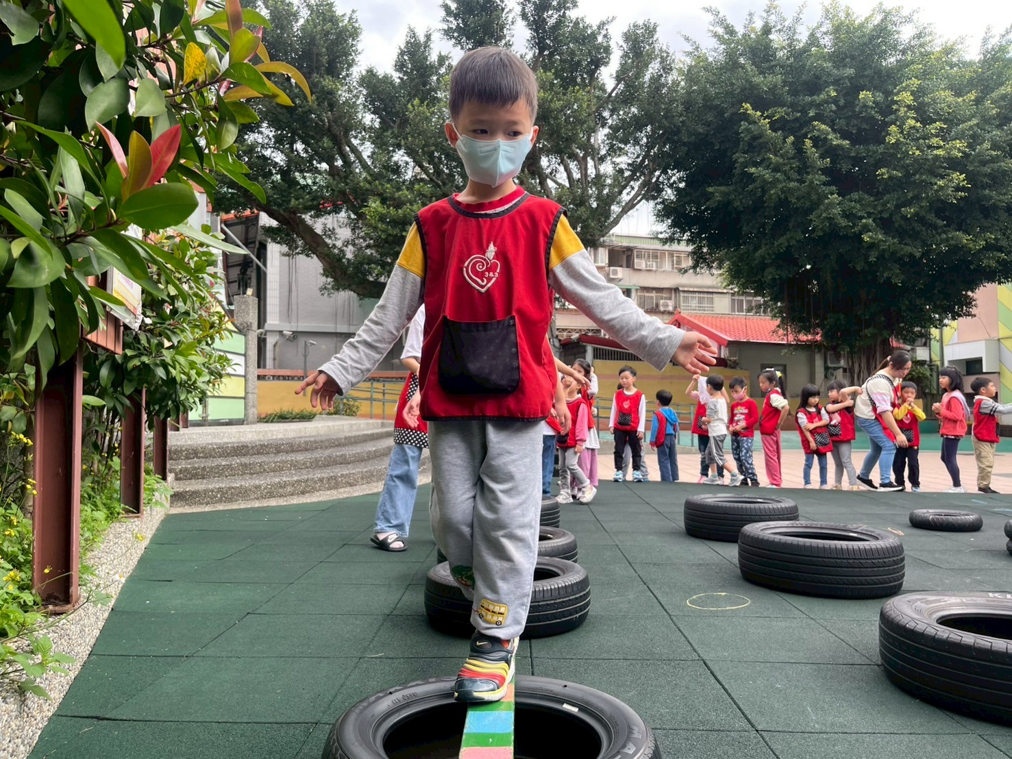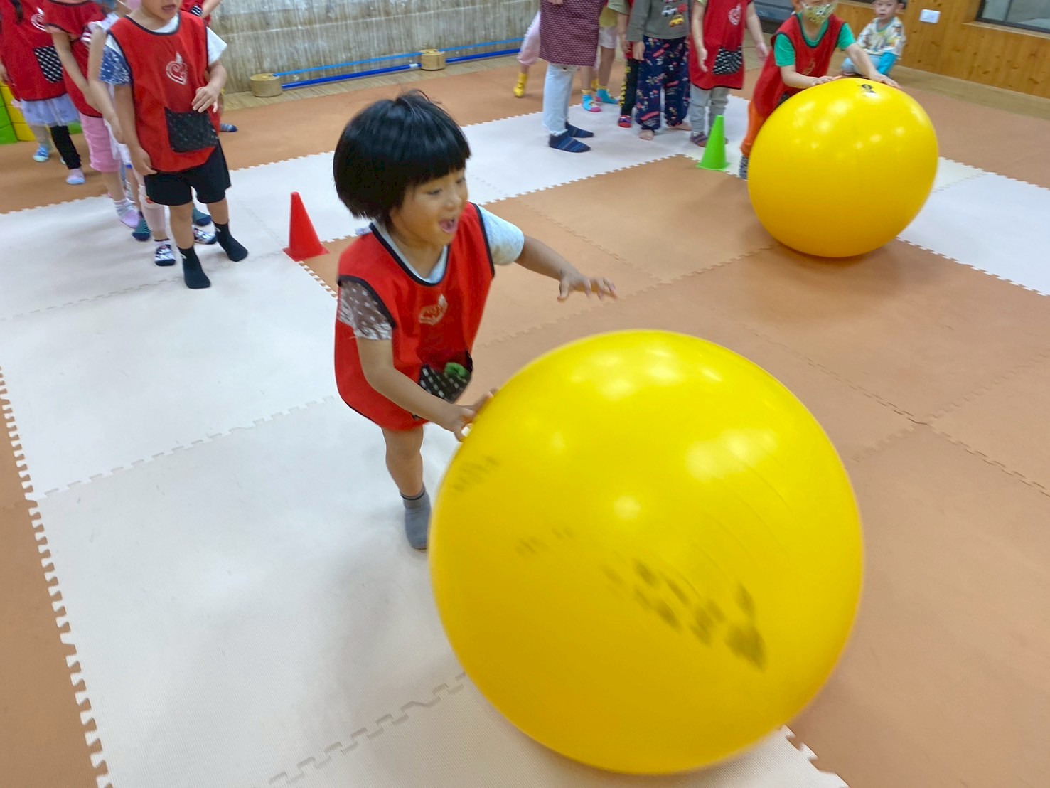 本月份邀請孩子進行各項動作來提升孩子在執行時的敏捷性,藉由氣球傘、輪胎、球類器材來設計各個有趣的關卡讓孩子們挑戰喔!