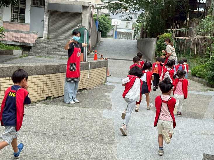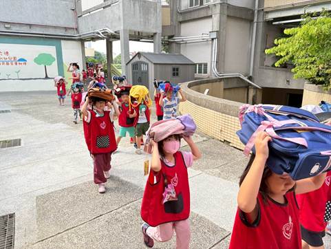 火災來了不驚慌,跟著老師的引導走,蹲低身體摀住口鼻,不推擠、不嘻鬧,遵守規則的小孩有最厲害!