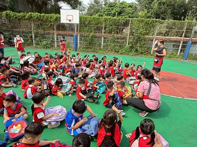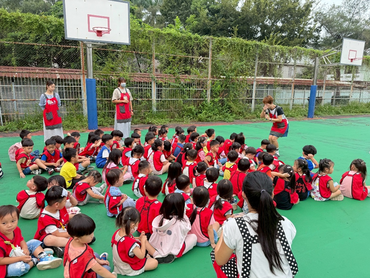 火災發生該怎麼辦呢?不奔跑、不嘻笑、不推擠,跟著老師的引導摀住口鼻蹲低身體往避難場地集合吧!