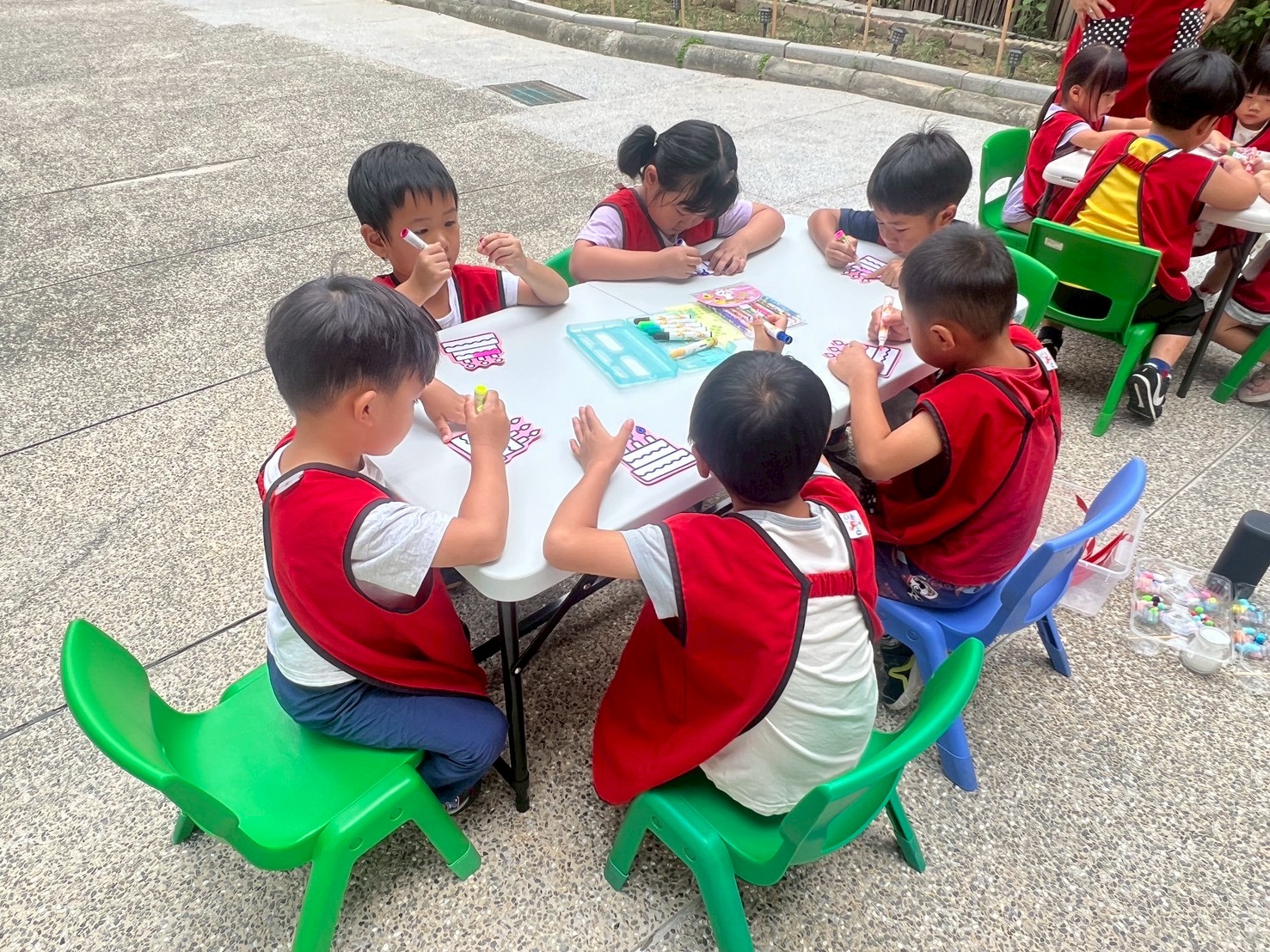 貼上圓點貼,塗上自己喜歡的顏色,完成屬於自己的蛋糕頭飾,再和大家一起圍著蛋糕唱歌,好開心