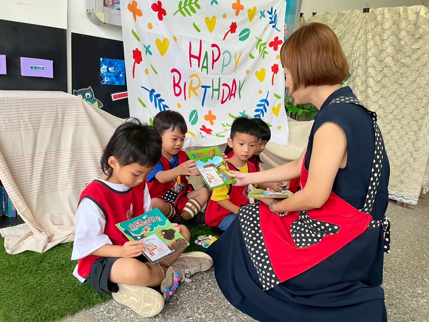 透過歌唱、體能遊戲...等活動慶祝八月小壽星生日,祝小寶貝生日快樂~