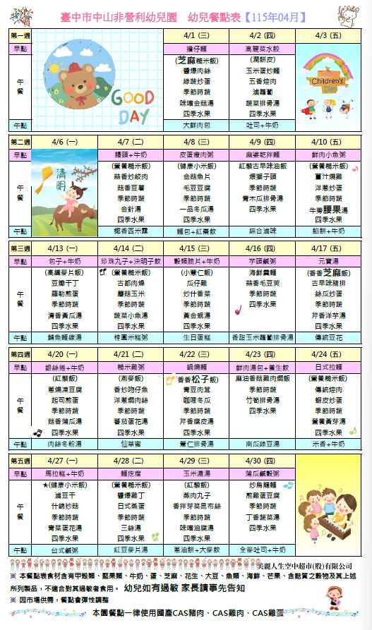 每月餐點表