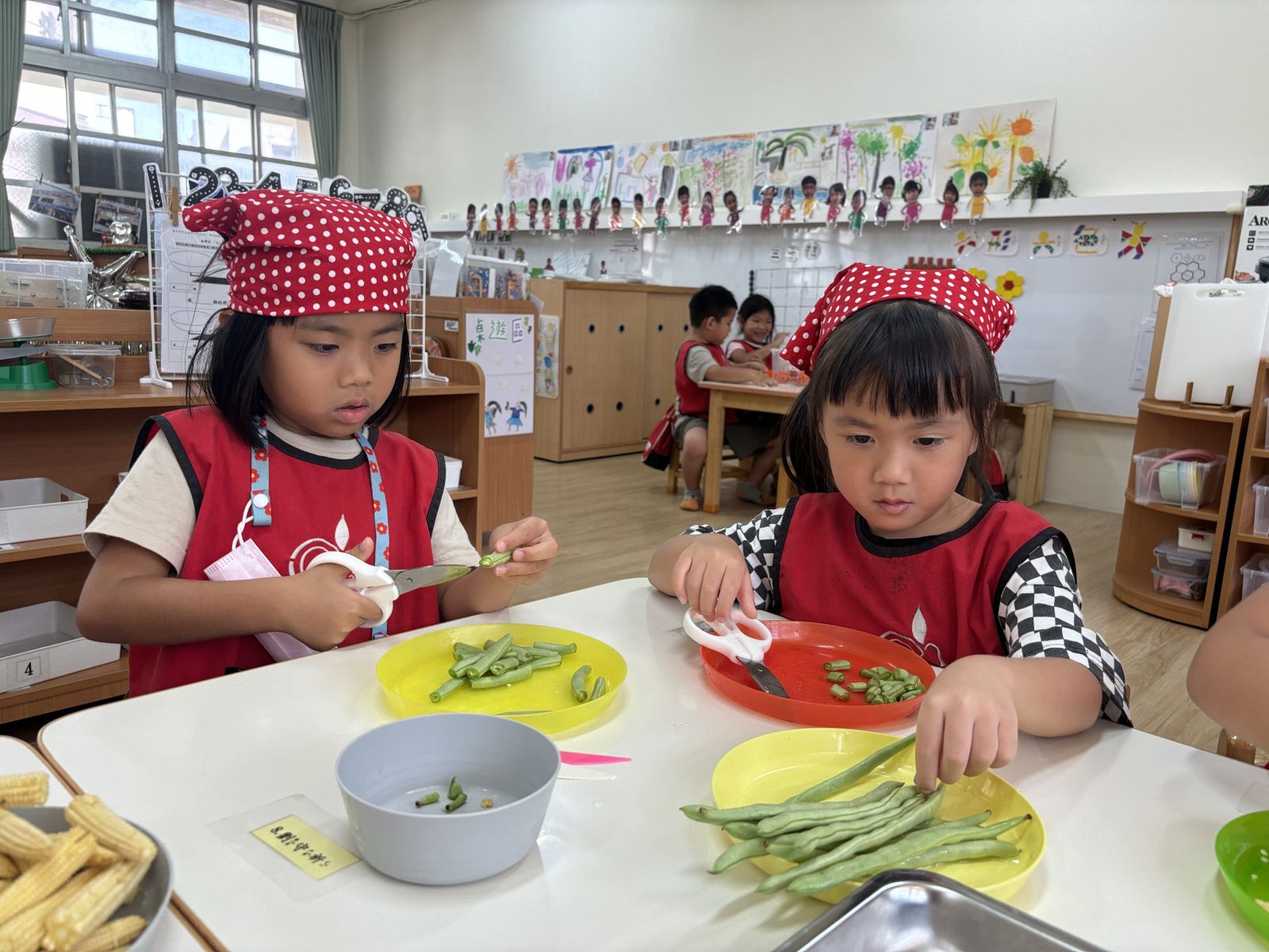 運用食物剪刀,把長長的青蔥變短,加入麵粉、水,變成香噴噴的蔥油餅。