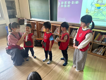 ▲請幼兒示範正確玩法與安全的排隊等待位置,增進幼兒的自我保護意識。