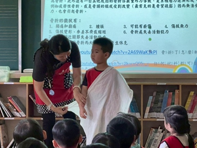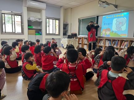 ▲教導手指的方向。 ▲跳愛眼操,一起保護眼睛。