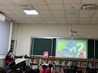 ▲播放防災相關影片。 ▲播放防震相關影片。