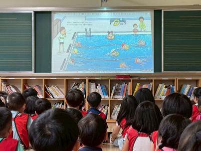 ▲故事引導,建立水域活動正確觀念。▲了解救溺五步驟-叫叫伸拋滑