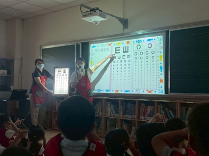 ▲故事分享《眼鏡公主》。 ▲學習如何測量視力。