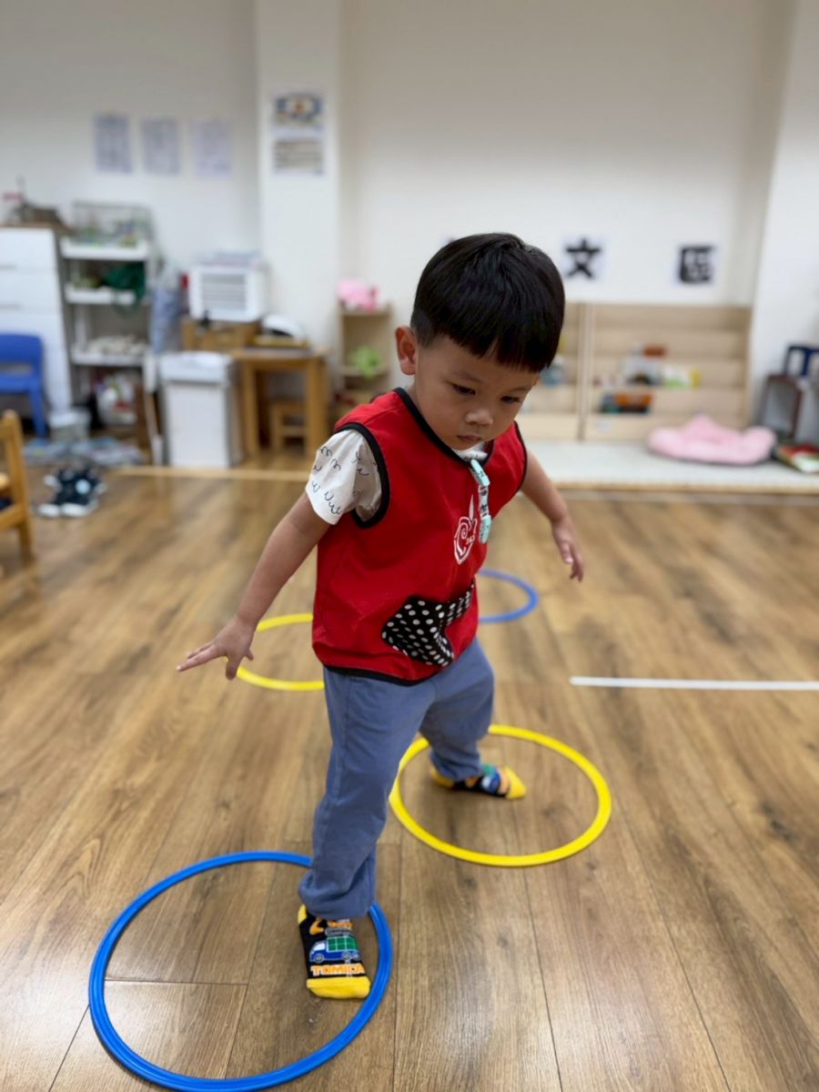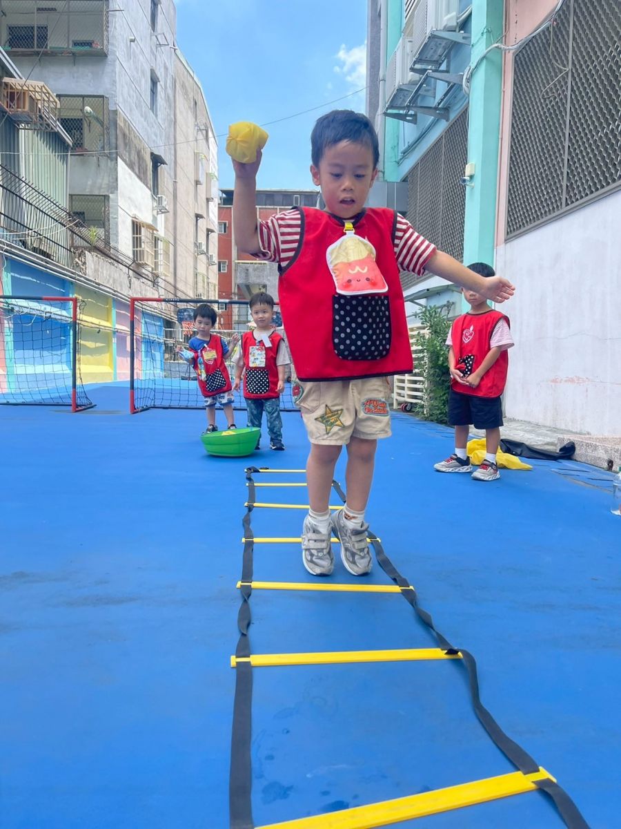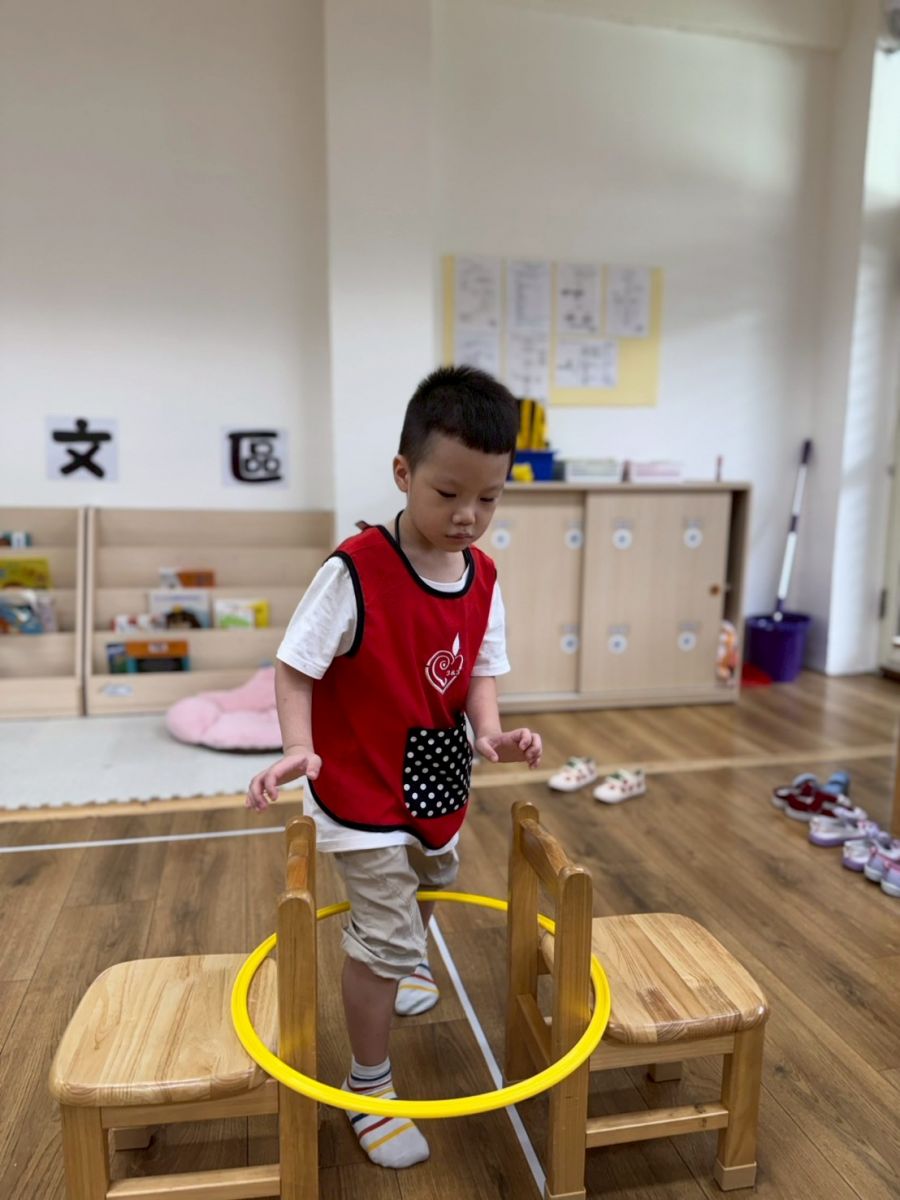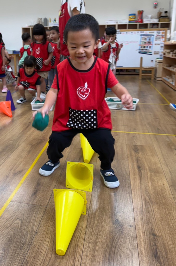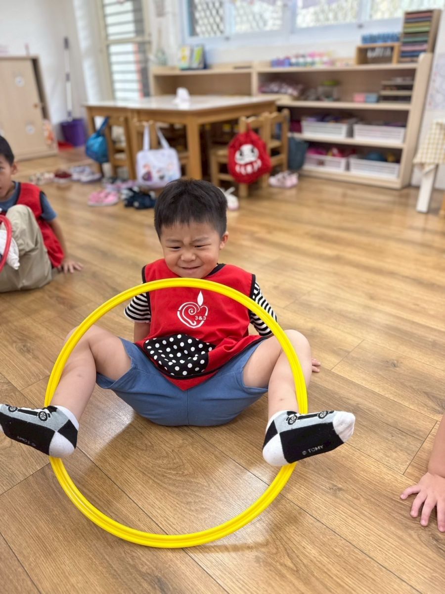從鑽、跳、轉等動作中認識身體界線,提升動作協調與空間感,在歡樂中適應幼兒園新生活。