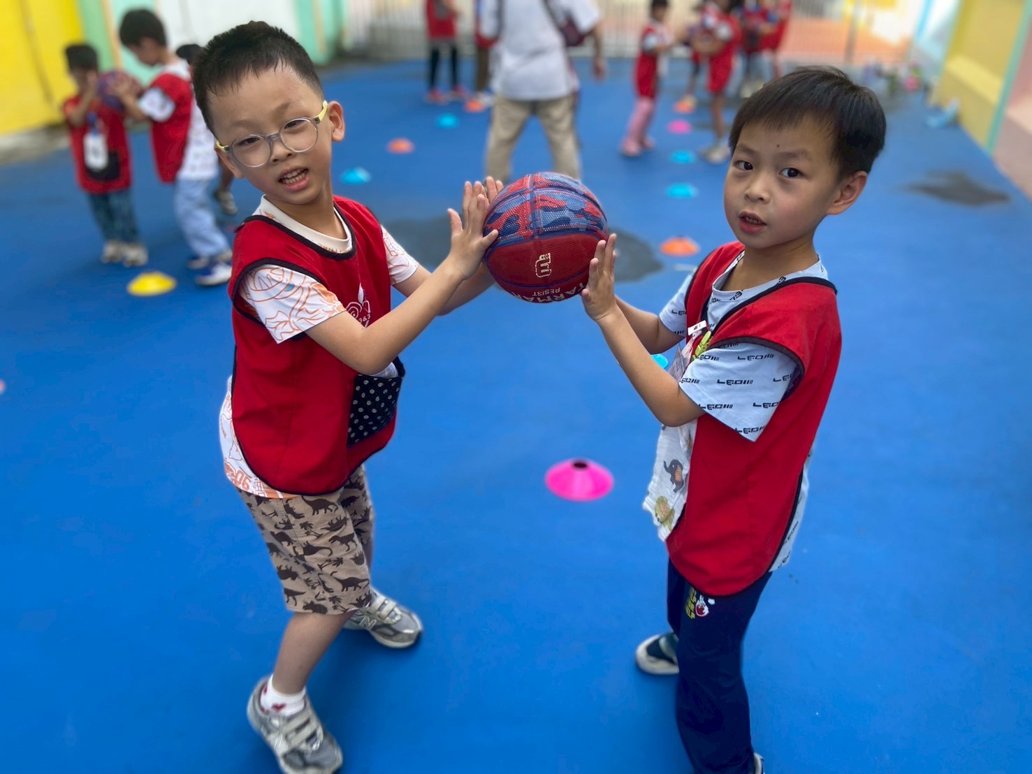 開學初,孩子們充滿朝氣地展開籃球遊戲,