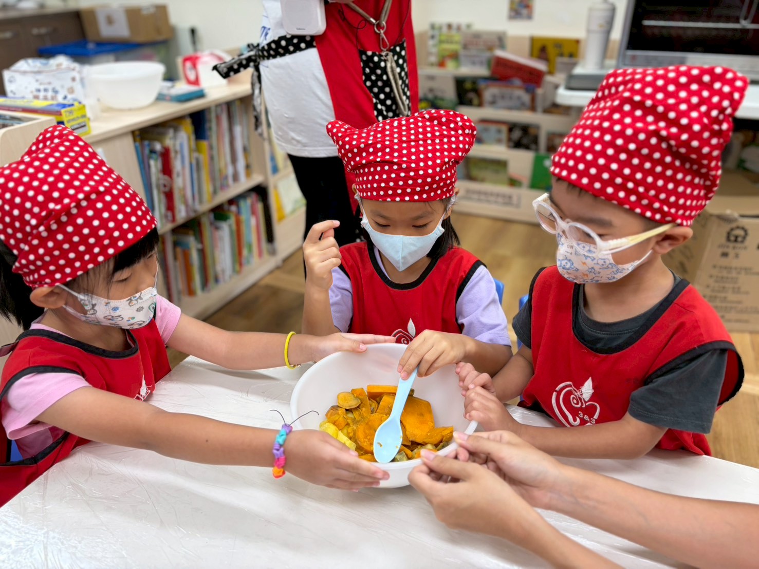 孩子們一起動手製作香濃滑順的「南瓜布丁」,