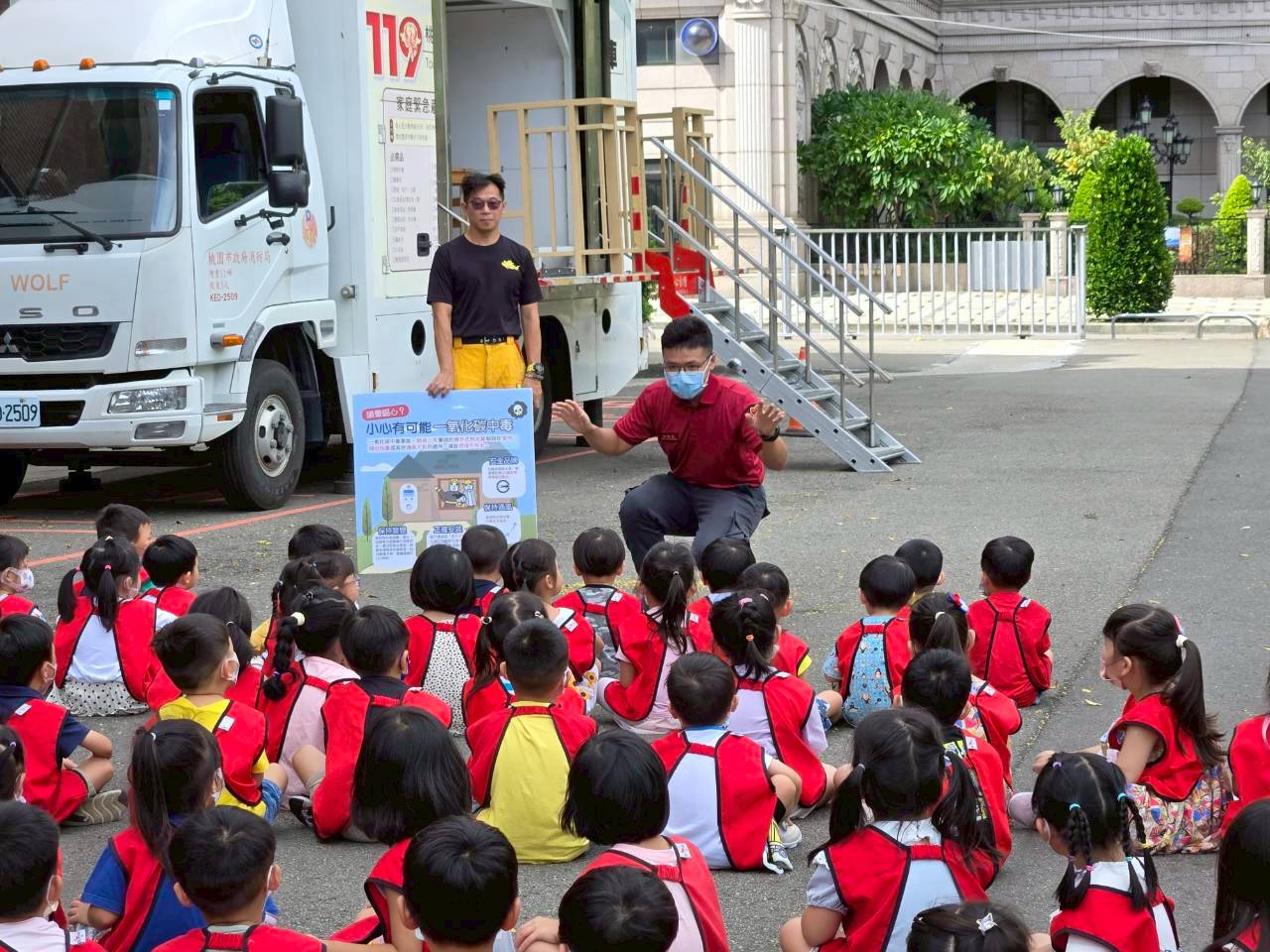 透過實地演練,孩子們不僅學會了「保護頭部、冷靜逃生」的基本動作,也增進了面對突發狀況的安全意識。