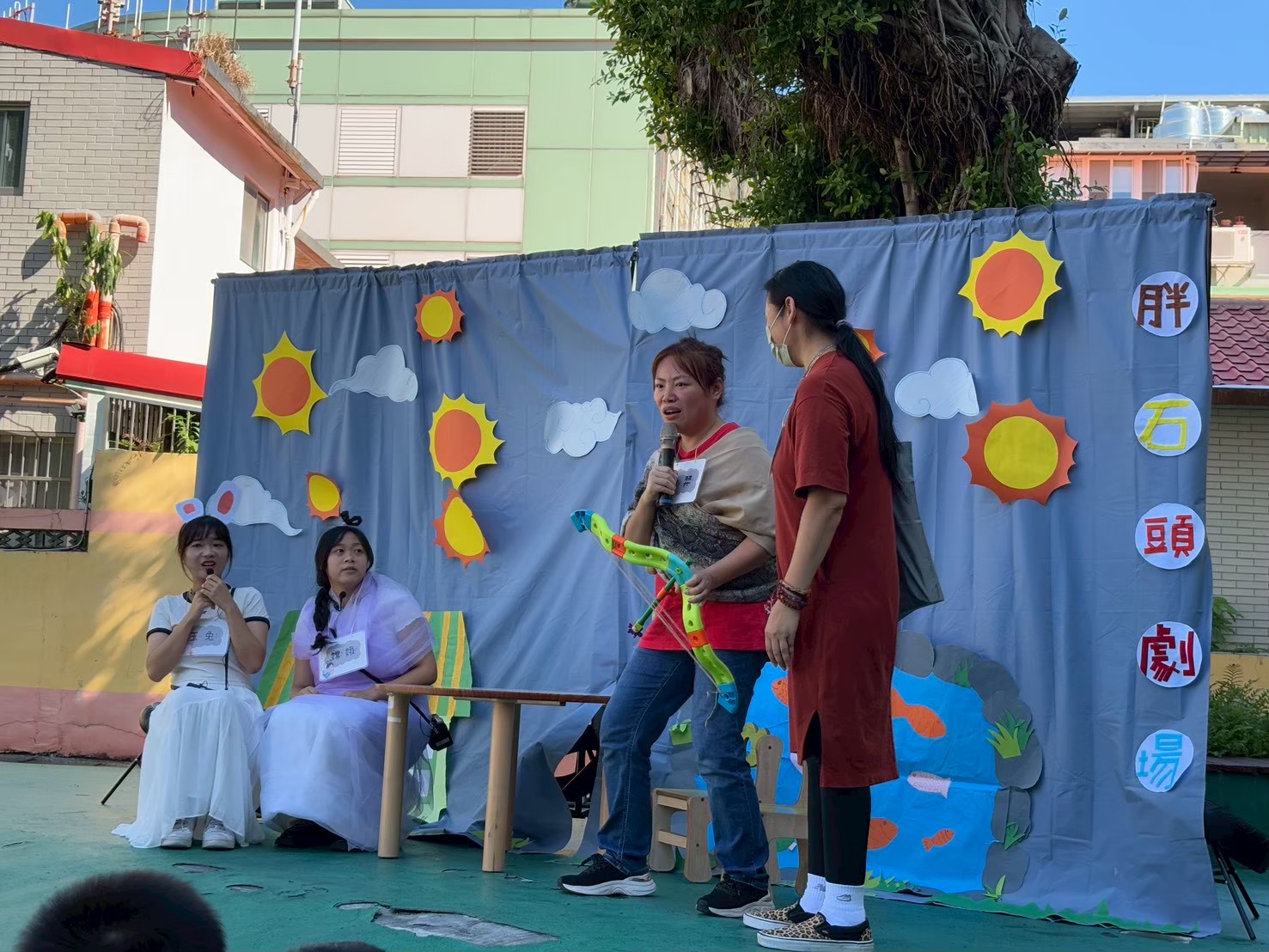 透過戲劇的演出,帶著孩子認識復古童玩,也在劇場的尾聲邀請家長上台分享復古童玩的玩法唷~