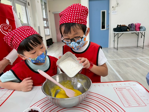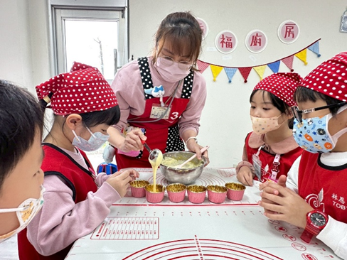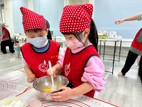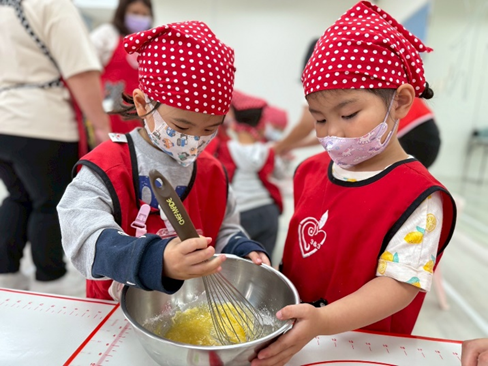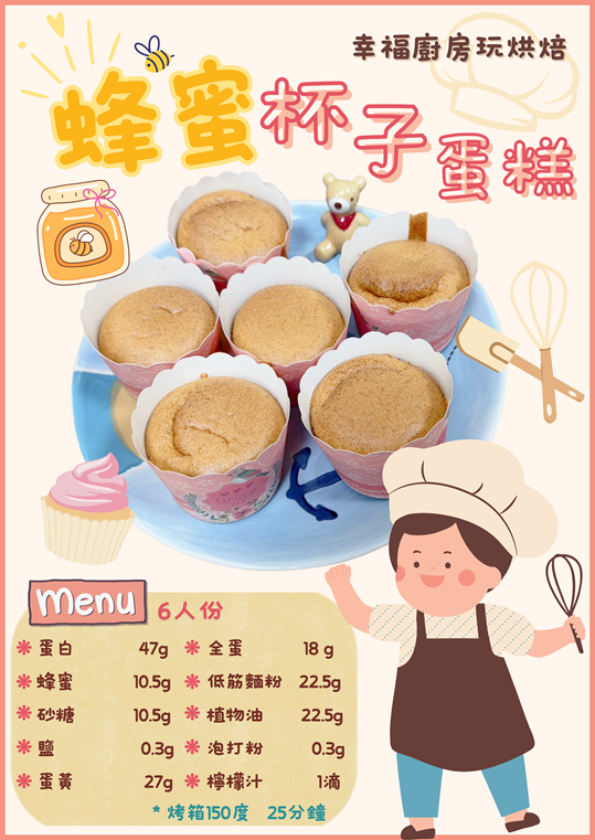 這次的烘焙活動帶領大家製作香香甜甜的蜂蜜杯子蛋糕喔!我們一起認識食材,並且輪流合作混合攪拌,過程中大家都非常小心翼翼,最後再將完成的麵糊倒入紙杯中,一個個可愛的杯子蛋糕就準備進烤箱囉!活動結束後,小朋友們也將親手製作的成品帶回家,與家人一同分享這份甜蜜與成就感。