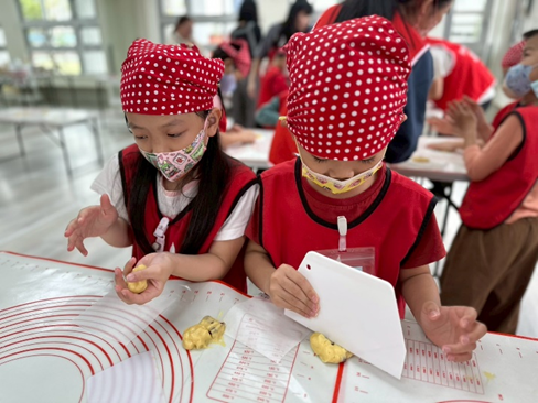 此次幸福廚房烘焙活動結合冬至節慶,帶領幼兒製作「繽紛蔬果彩色湯圓」。活動中,孩子們先認識冬至與搓湯圓的意義,並了解由 8 種蔬果製作的天然湯圓顏色,接著專注將蔬果泥與糯米粉均勻攪拌,以及練習動手搓湯圓。最後完成後,將這份暖心美味湯圓帶回家與家人分享喔!