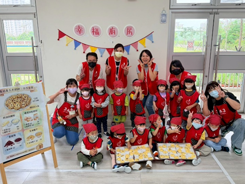 大家期待的幸福廚房又來囉,每個月的幸福廚房孩子們都很期待要做甚麼餅乾,今天就帶大家做芝麻脆餅;從一開始的介紹食材,接著把所有食材攪拌均勻,放入黑白芝麻,再讓幼生們搓出圓形並壓扁,最後將他們的成品送入烤箱,烤好後裝入碗中帶回和家人分享。