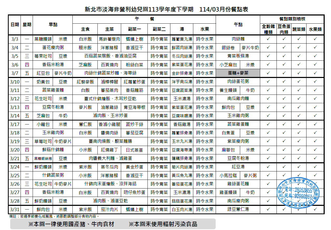 113/03月菜單