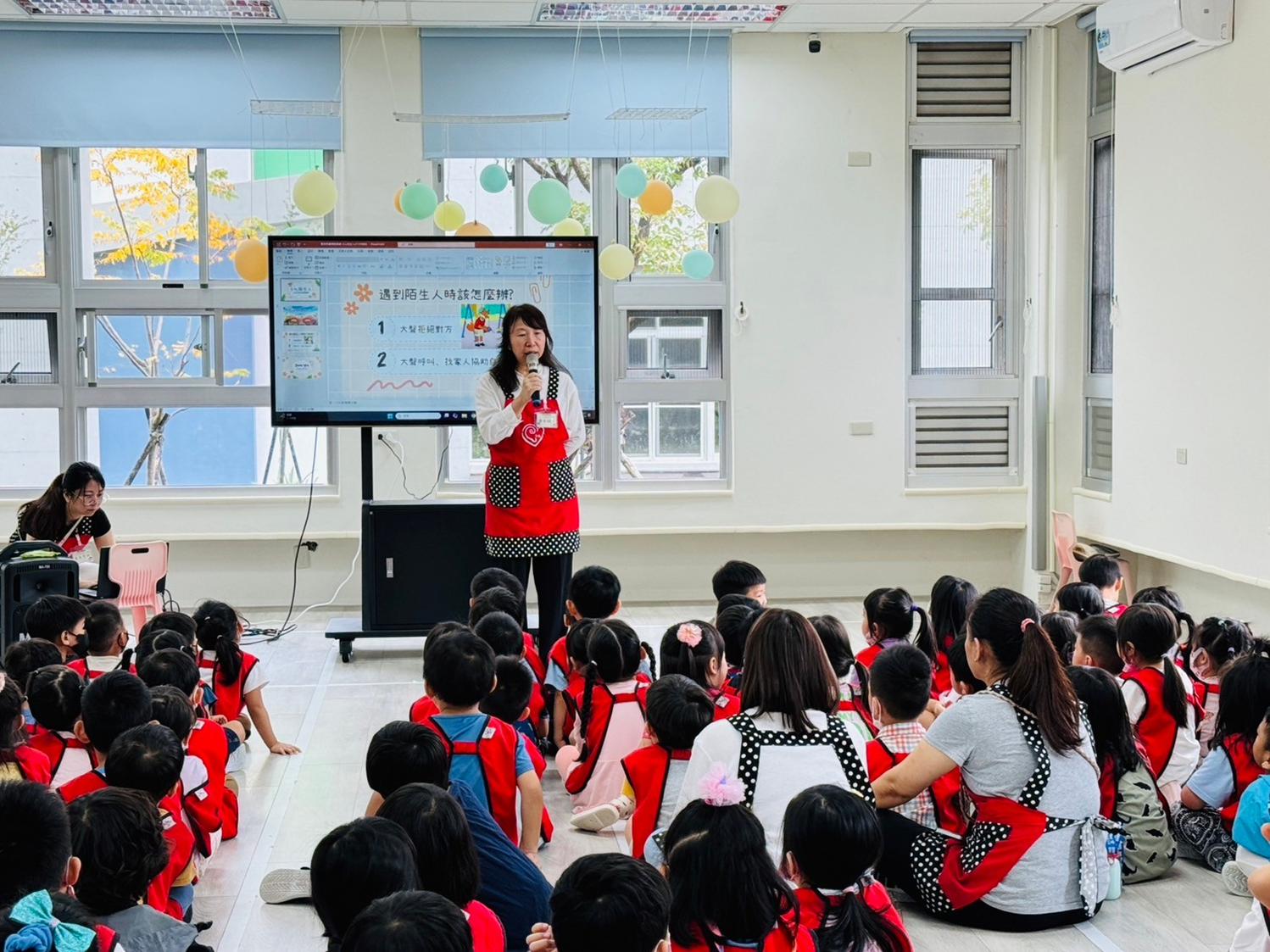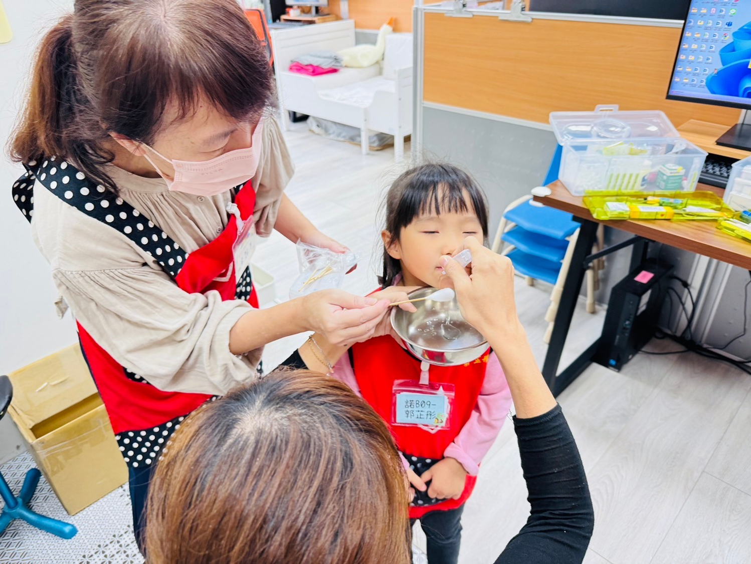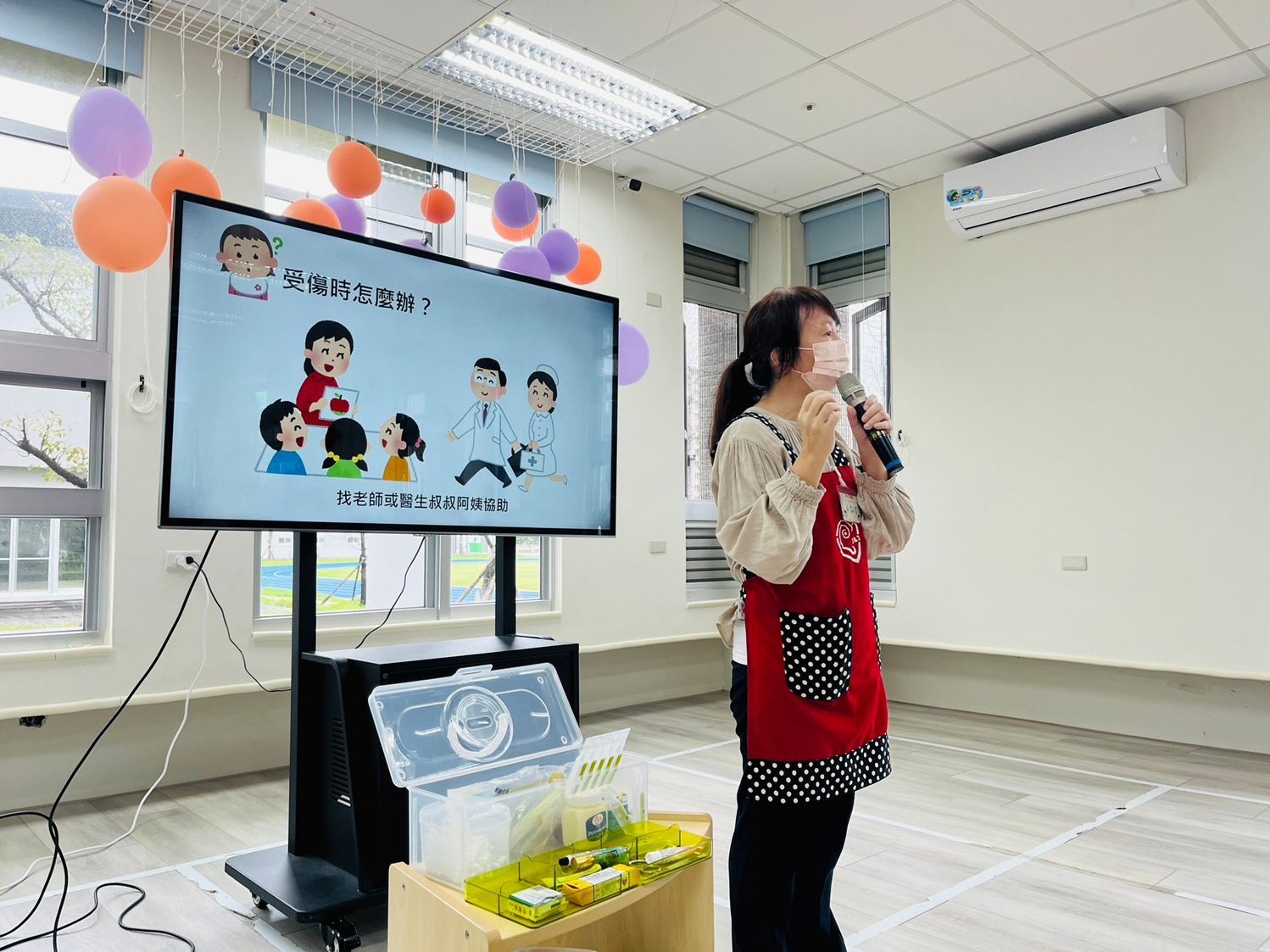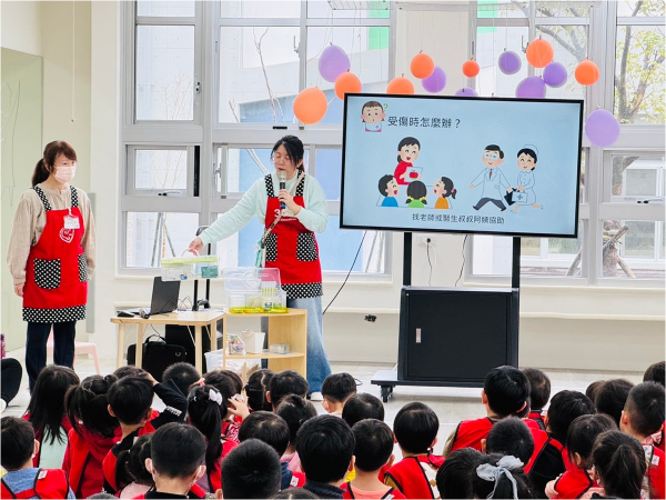 透過簡報帶領幼兒認識日常生活中預防燒燙傷的方法,並以情境劇引導幼兒了解當意外發生時的正確處理步驟,幫助幼兒學習自我保護、降低受傷風險。同時由護理師示範正確的急救處理方式,讓教職人員提升相關知能並強化安全意識。