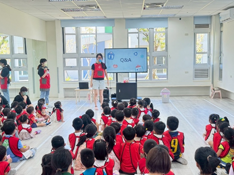 本次衛教活動以「我會擤鼻涕」為主題,老師先透過圖片引導幼兒了解鼻子的功用及如何保護鼻子。接著安排生動有趣的戲劇情境,讓孩子觀察並分辨哪些才是正確照顧鼻子及擤鼻涕方式。最後邀請幼兒實際上台操作,練習正確的步驟與過程。透過多元呈現與實作參與,孩子們不僅能更清楚理解,也能在日常生活中養成良好的衛生習慣喔!
