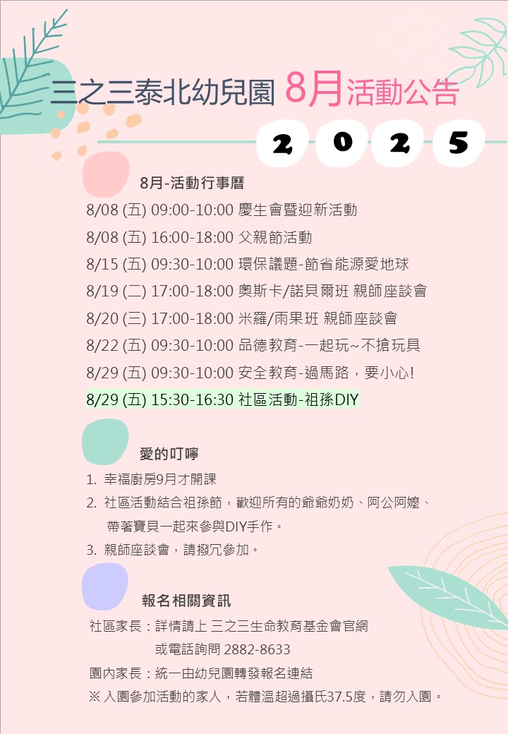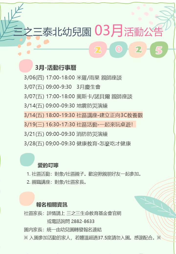 新北市桃子腳非營利幼兒園(委託財團法人三之三生命教育基金會辦理)