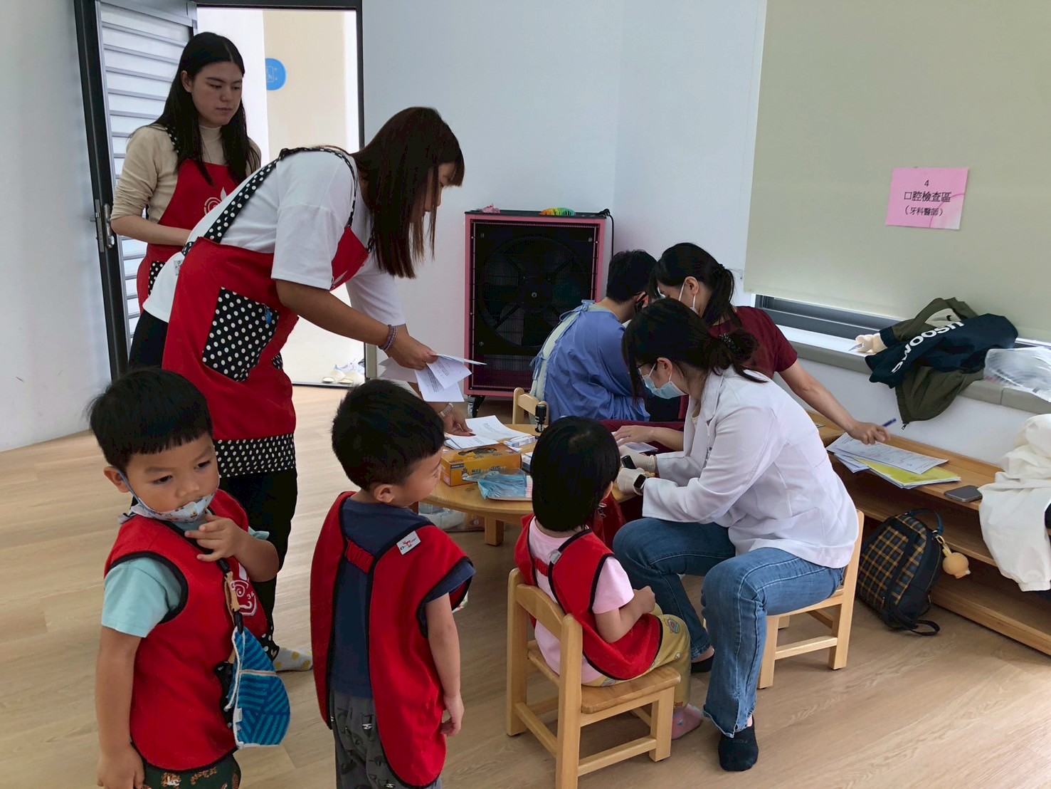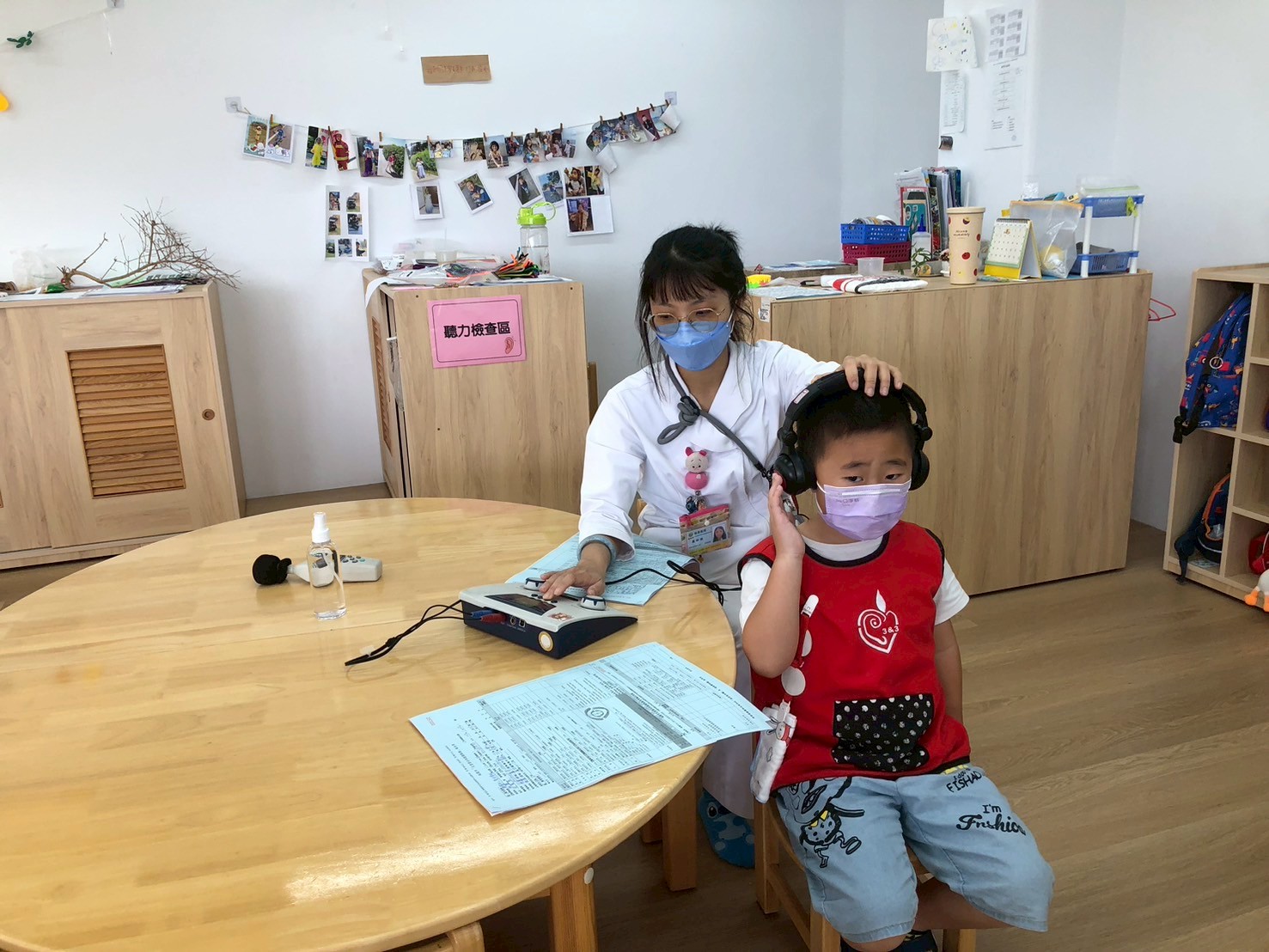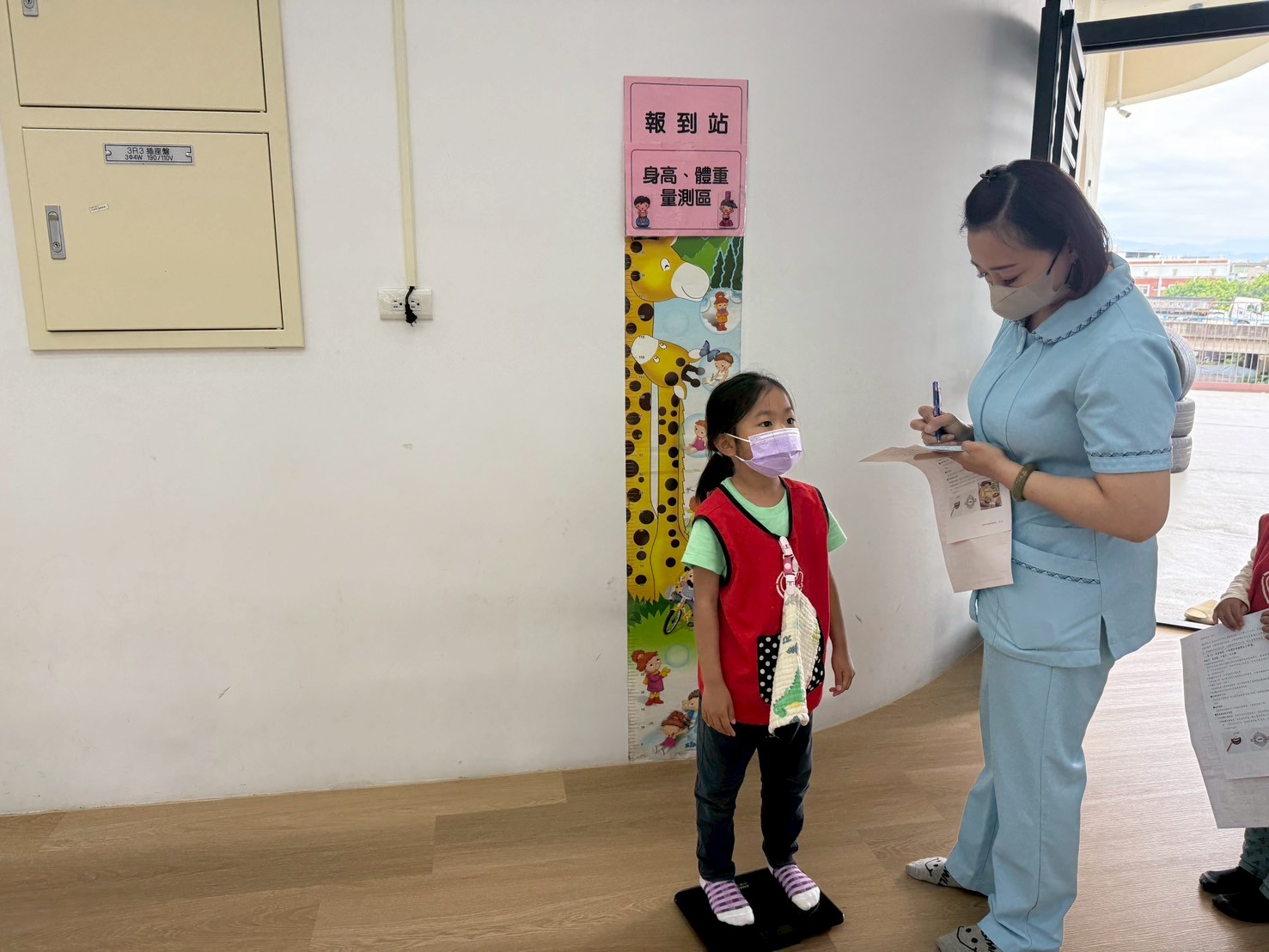 醫護人員細心地為孩子們測量身高、體重,確認視力與聽力,並進行基本健康評估,確保每位孩子都能健康地。
