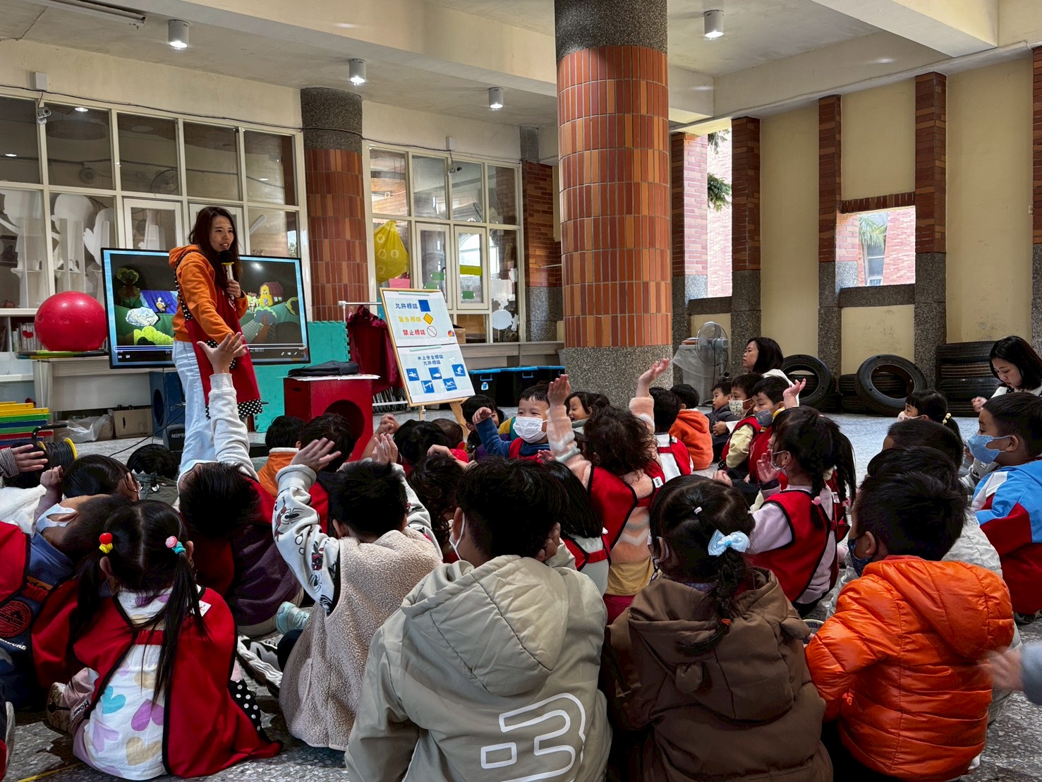 老師透過影片及海報來引導幼兒了解尊重他人身體自主權和適當的表達自己的情緒,才能更好的保護自己的安全哦!