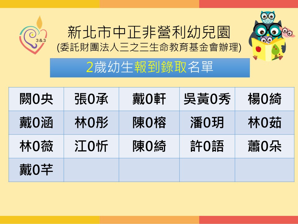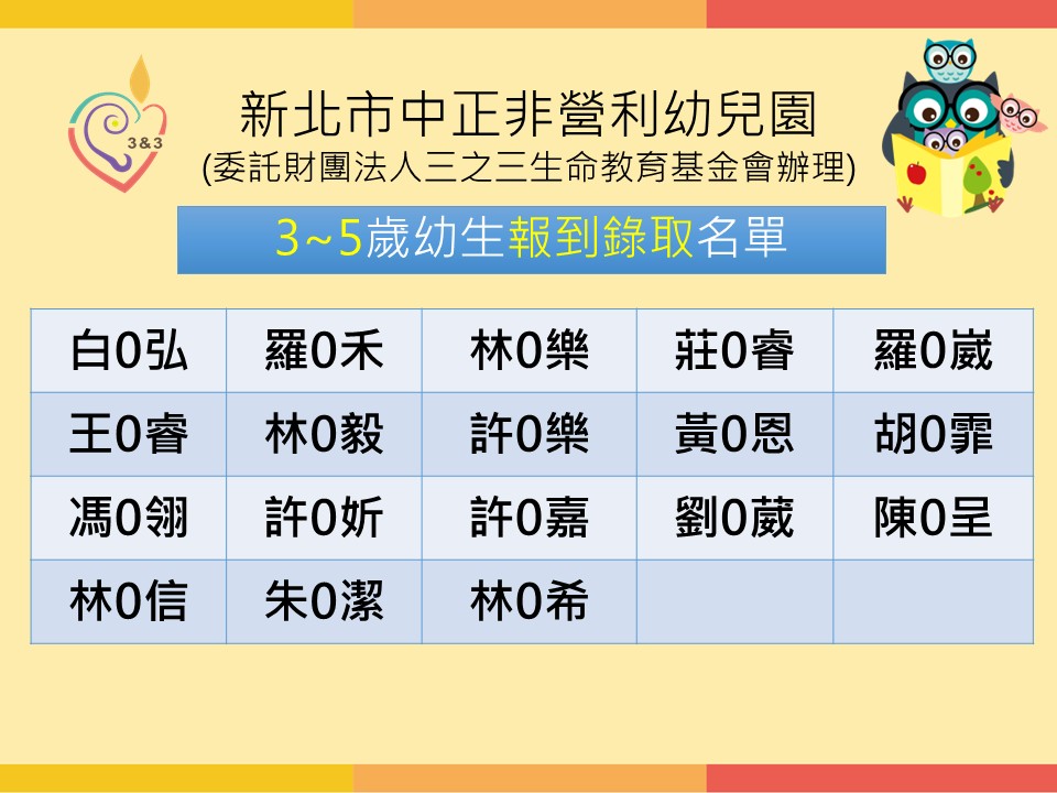 新北市中正非營利幼兒園114學年度備取登記