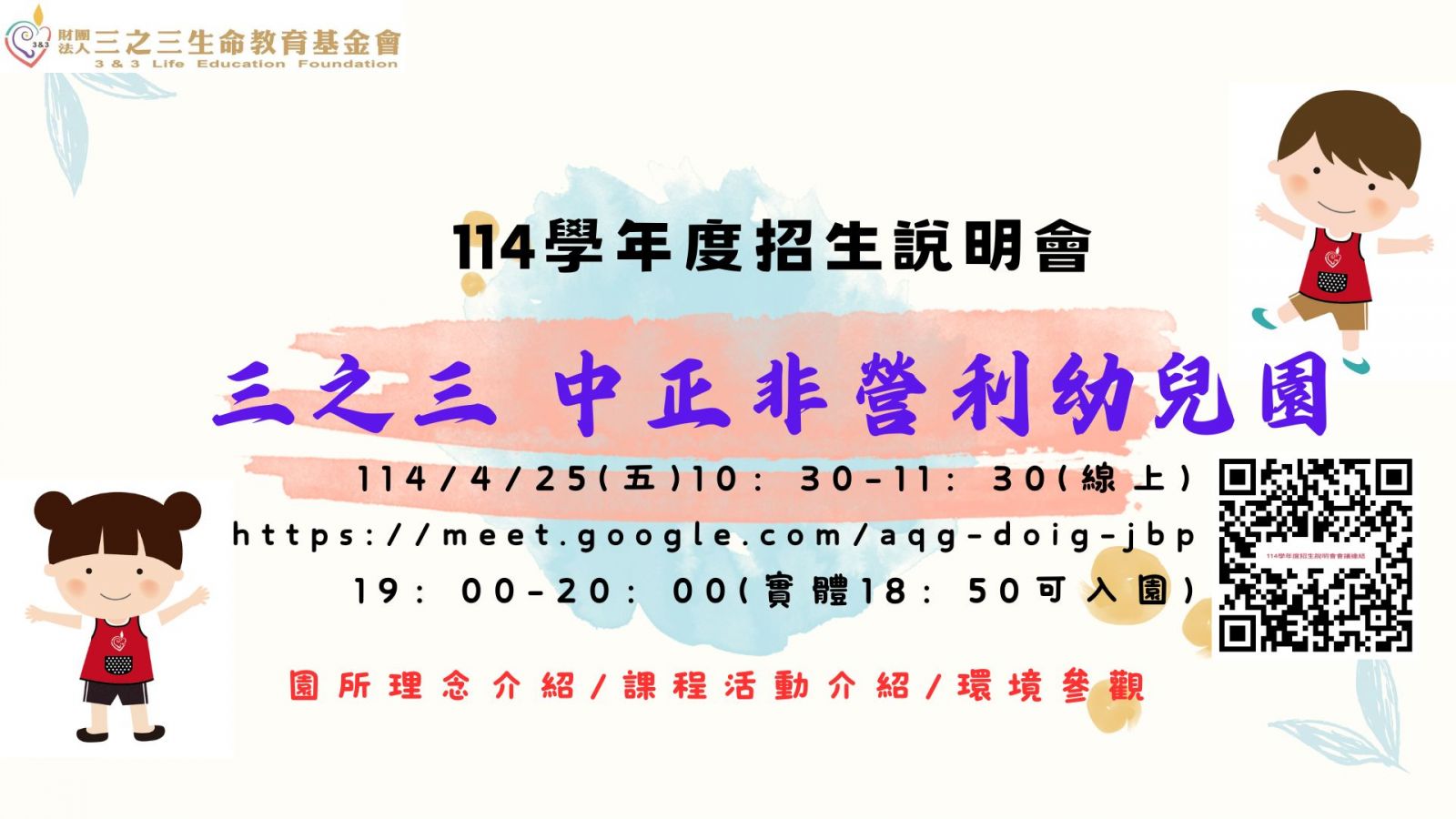 113年4月25日 上午10:30~11:30 線上 招生說明會