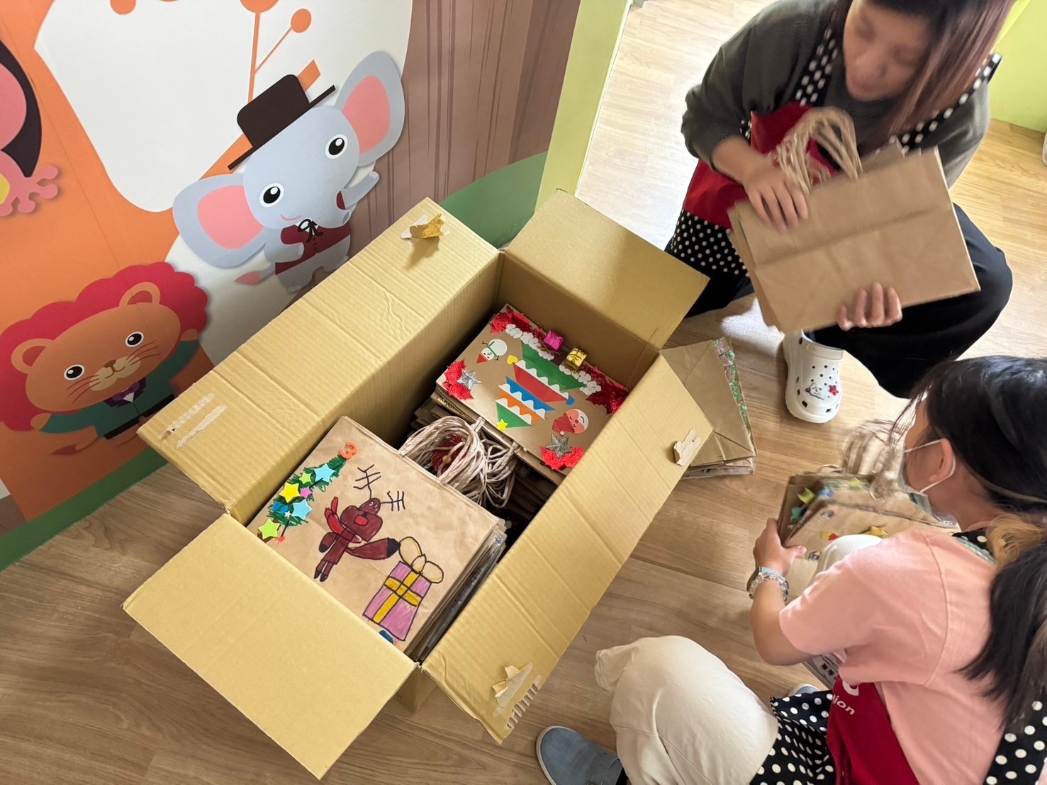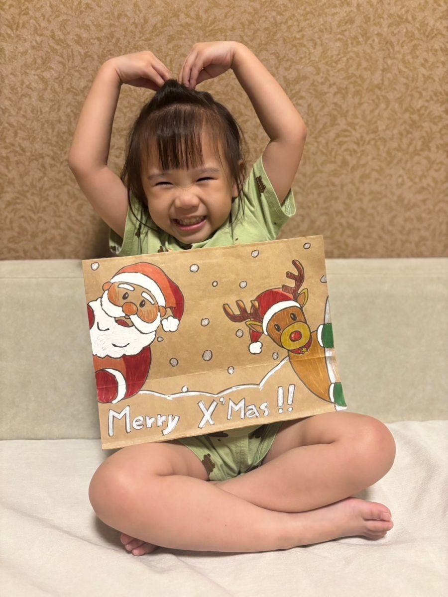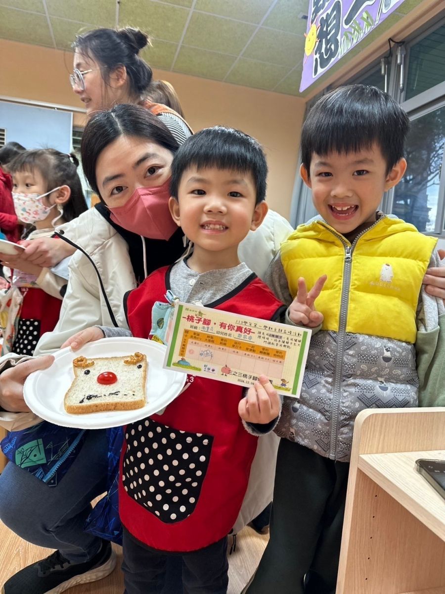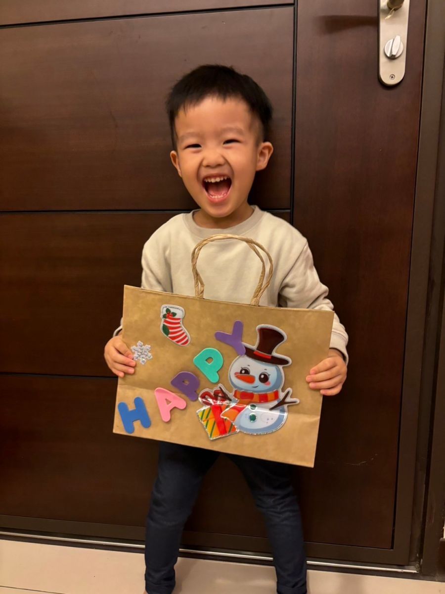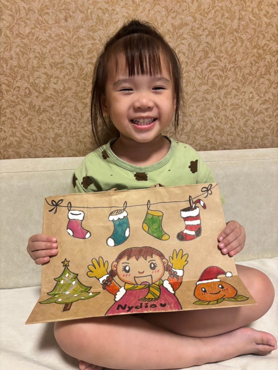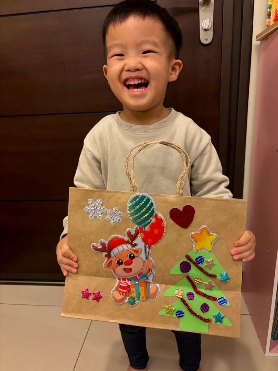 桃子腳幼兒園的寶貝們與爸爸、媽媽一起創作聖誕節提袋