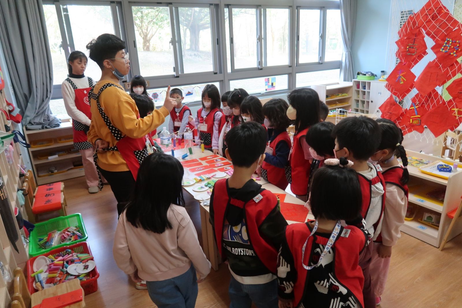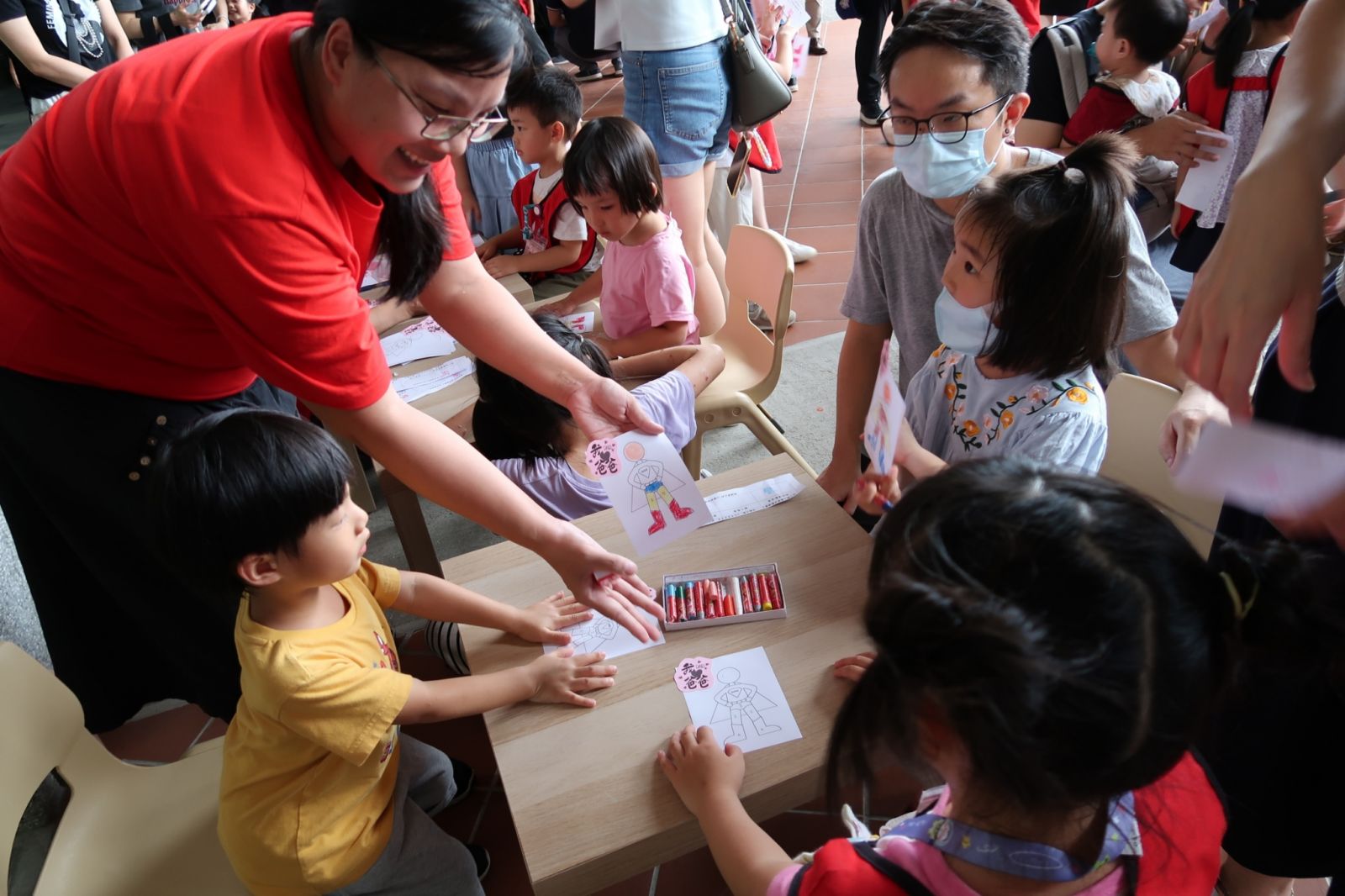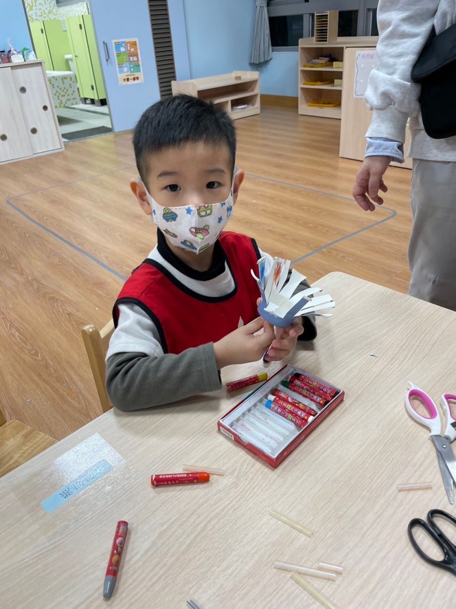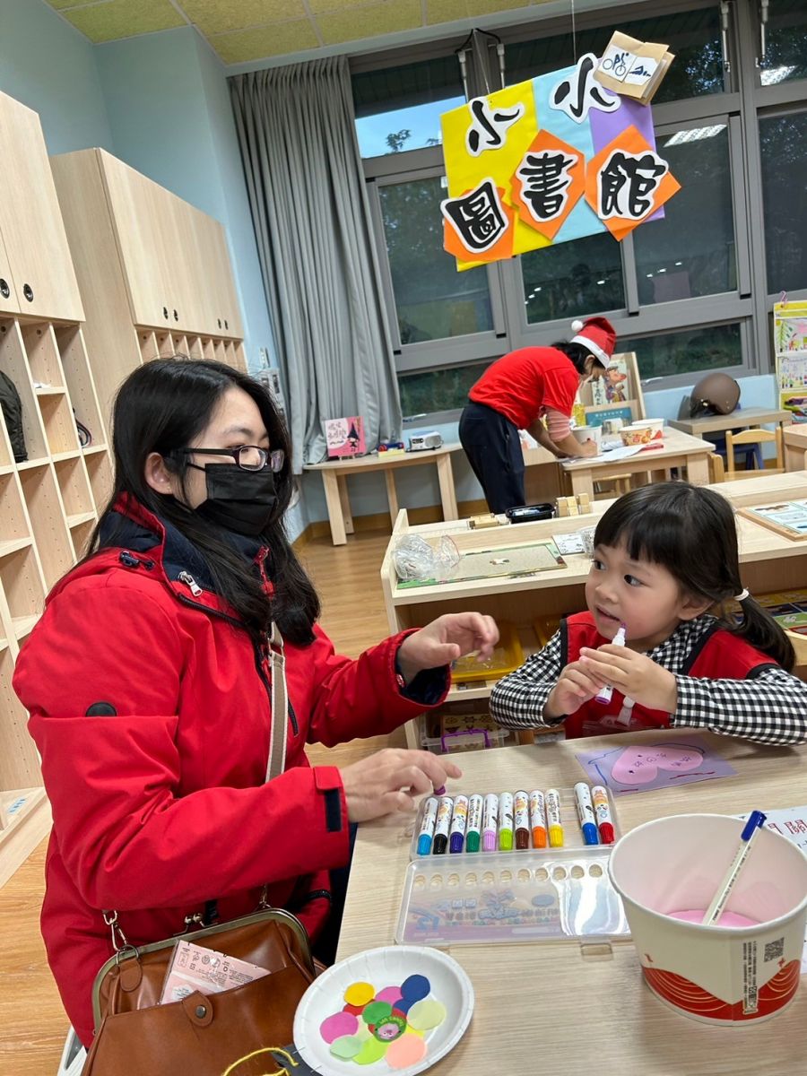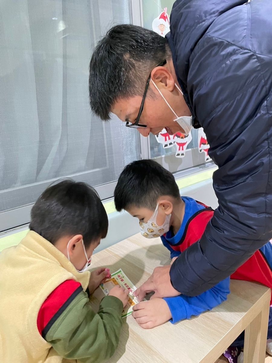 桃子腳幼兒園的寶貝們與爸爸、媽媽一起創作聖誕節提袋