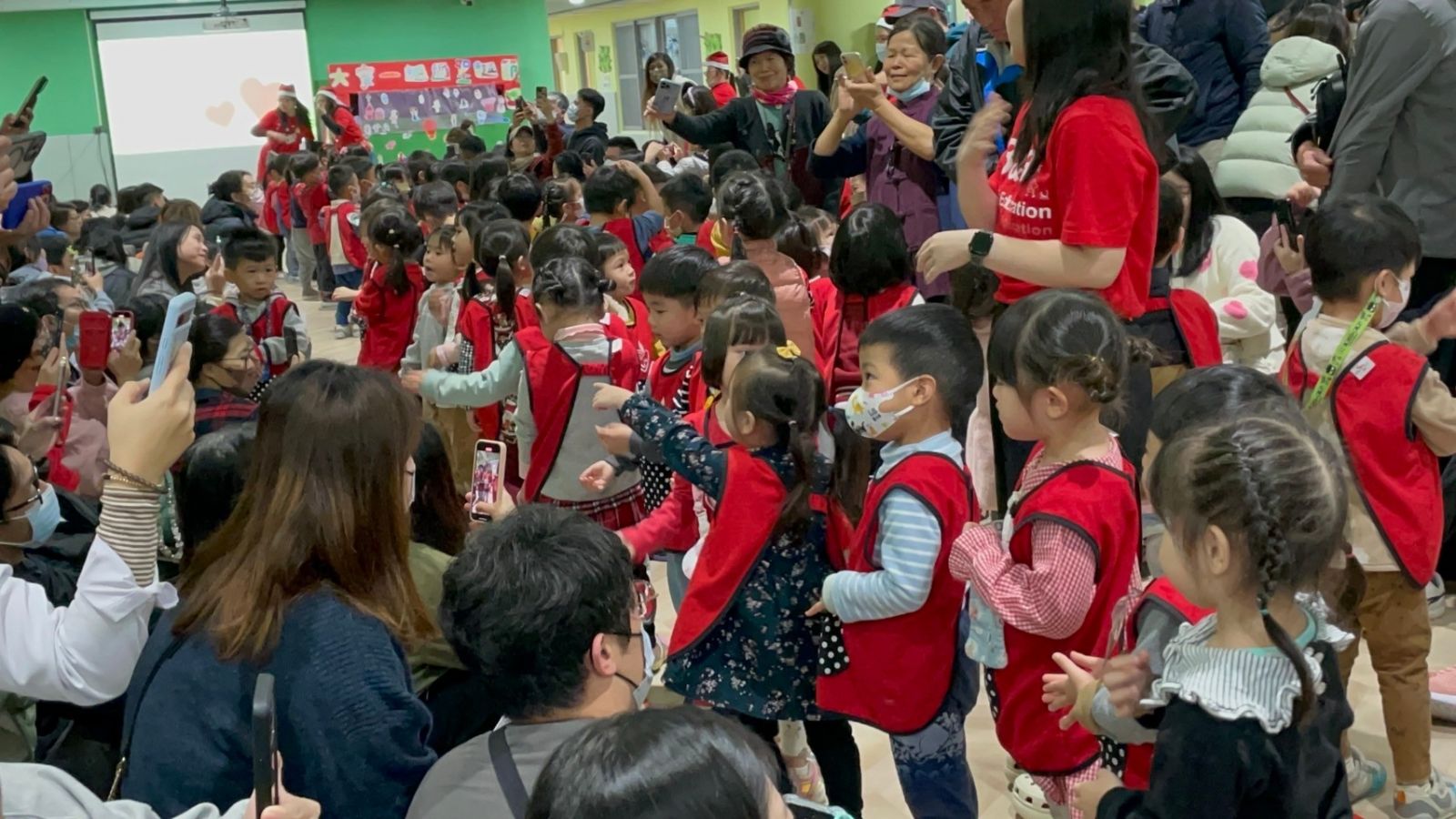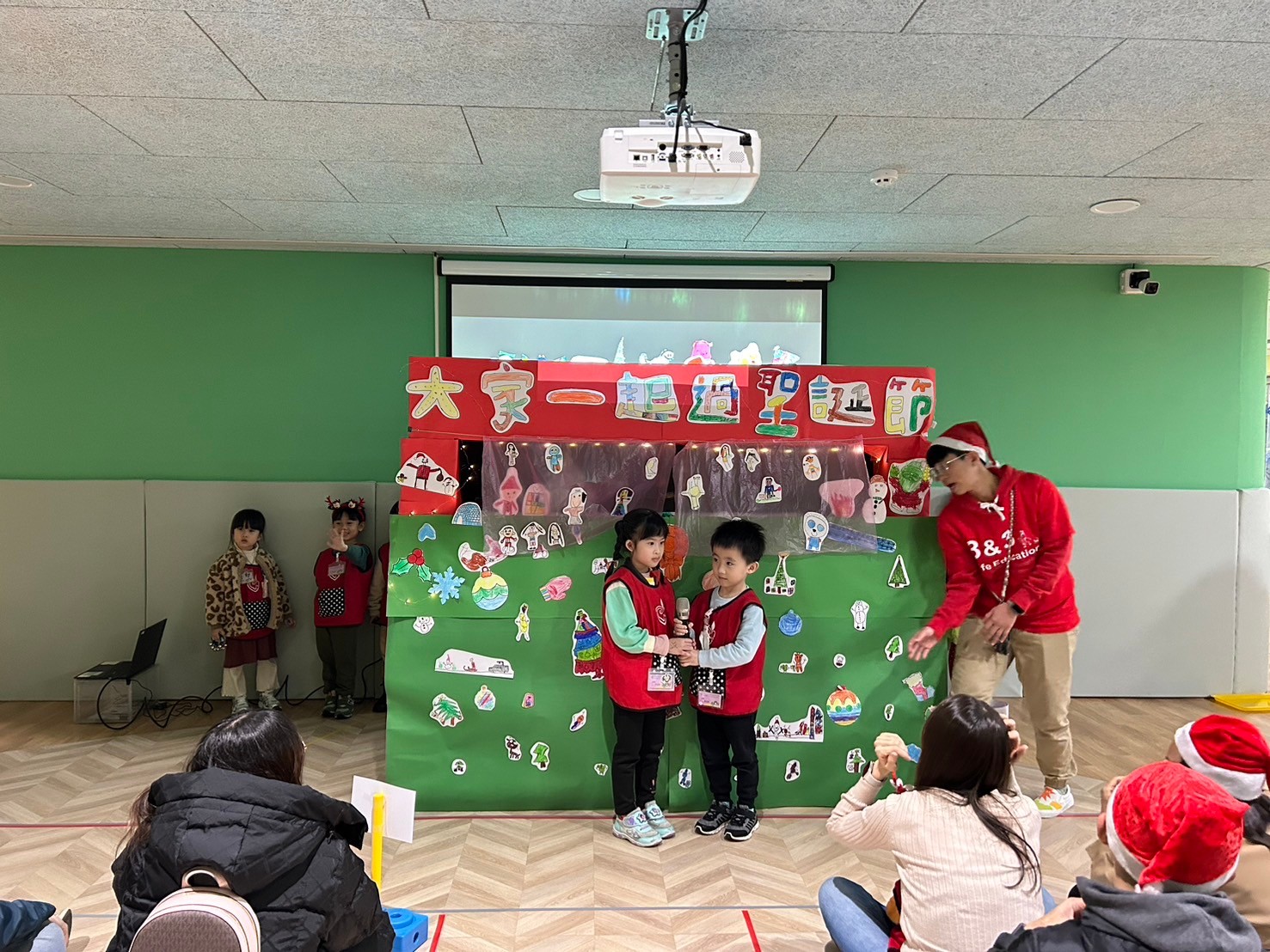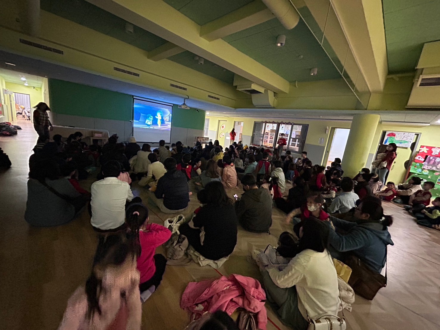 年末將近,桃子腳幼兒園在大廣場辦理親子電影院,