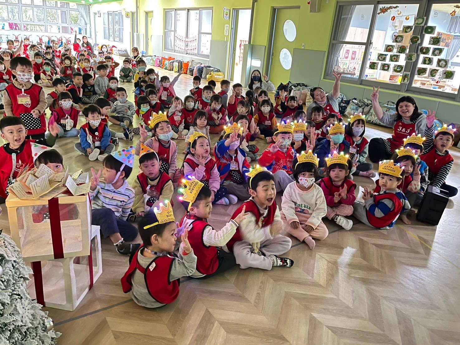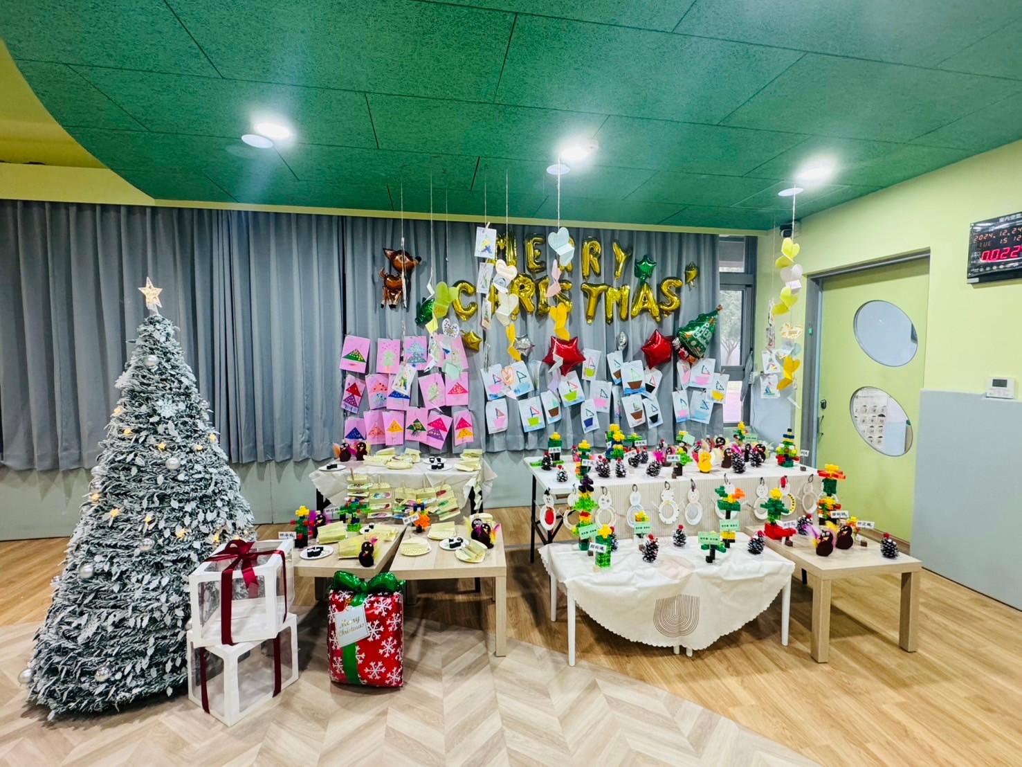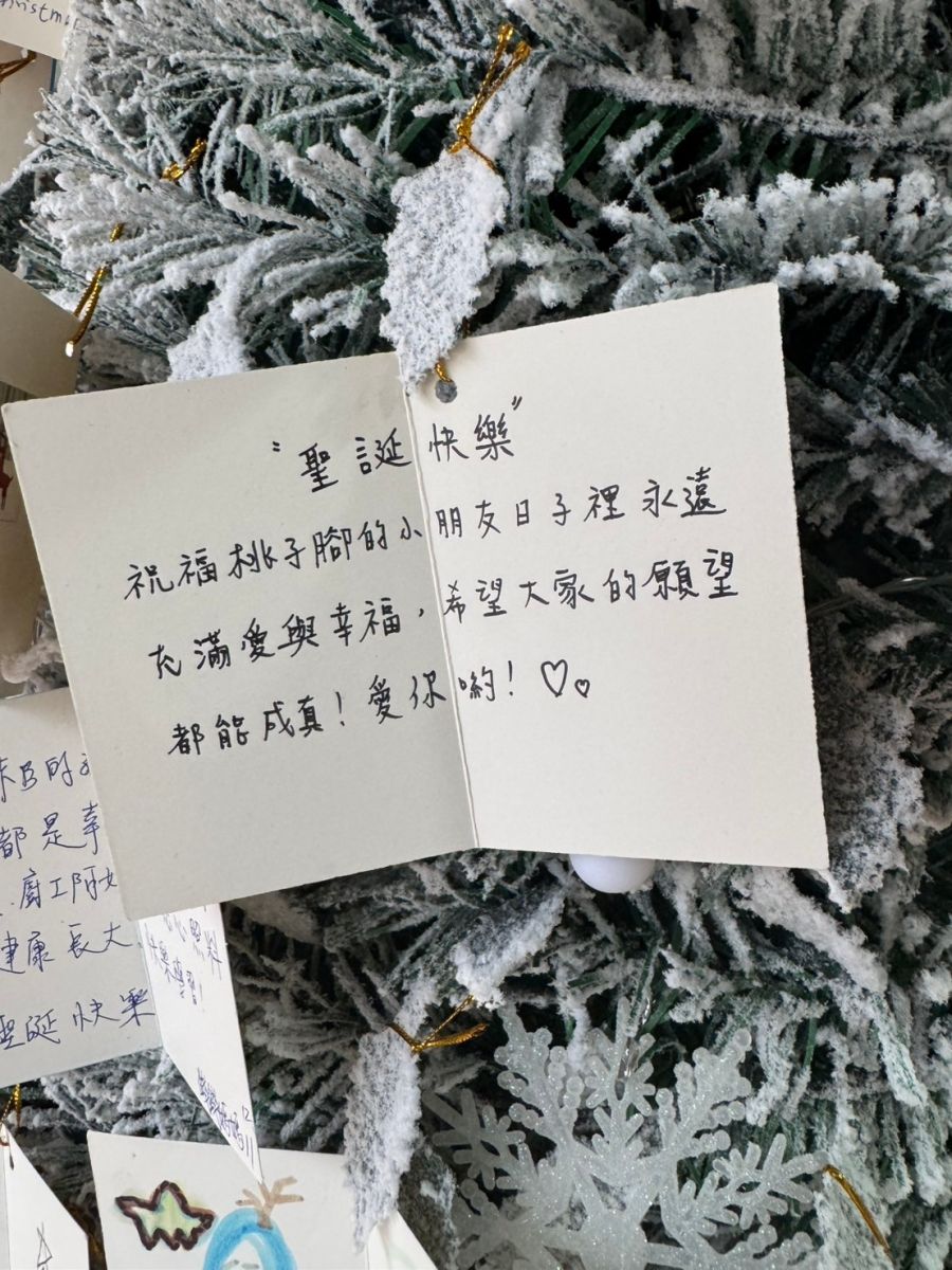 桃子腳幼兒園的第一棵聖誕樹上掛上了滿滿的祝福卡片,