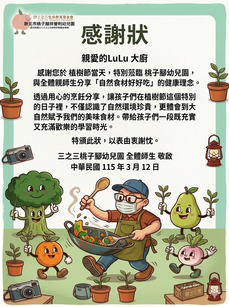 謝謝LuLu大廚,在植樹節這一天特別蒞臨桃子腳幼兒園