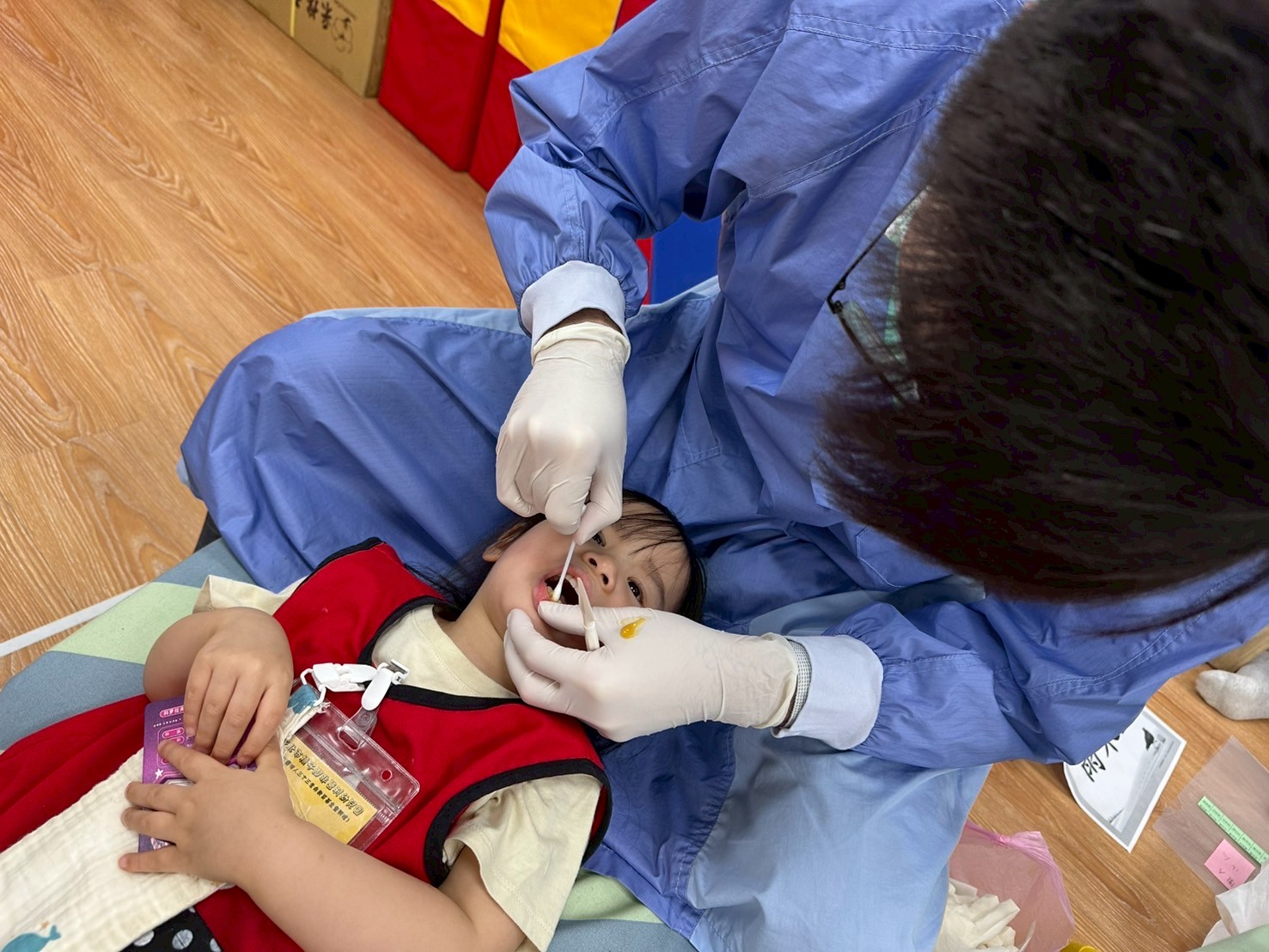 謝謝三峽小雲朵兒童牙醫診所教桃子腳的孩子刷牙及塗氟
