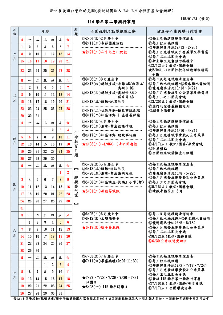 114學年度第二學期-行事曆