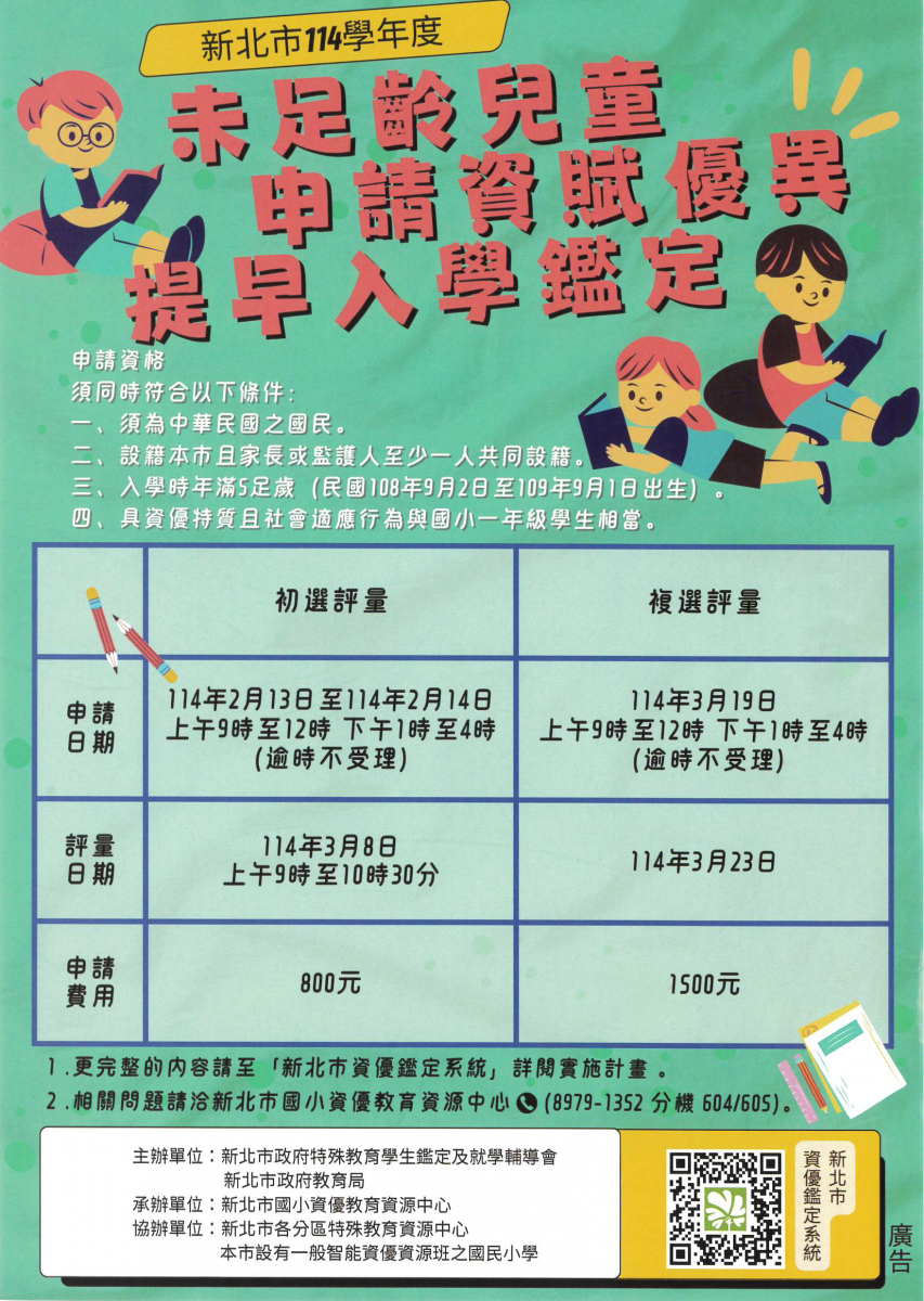 新北市114學年度 未足齡兒童申請資賦優異提早入學鑑定