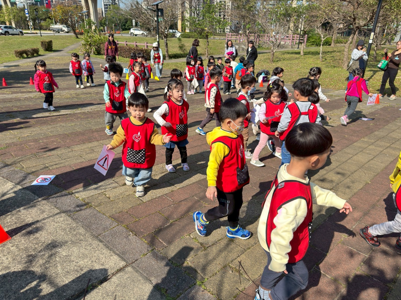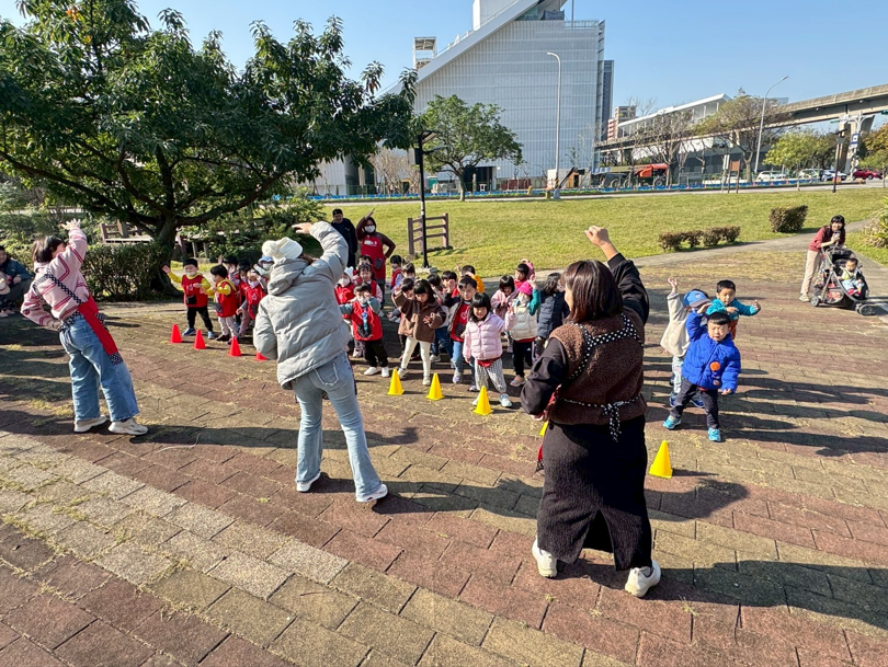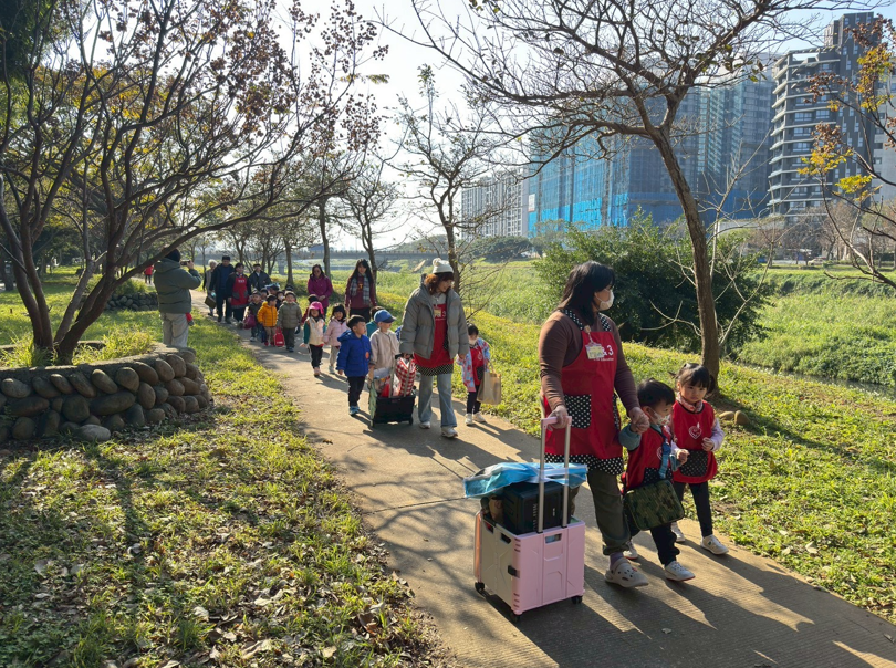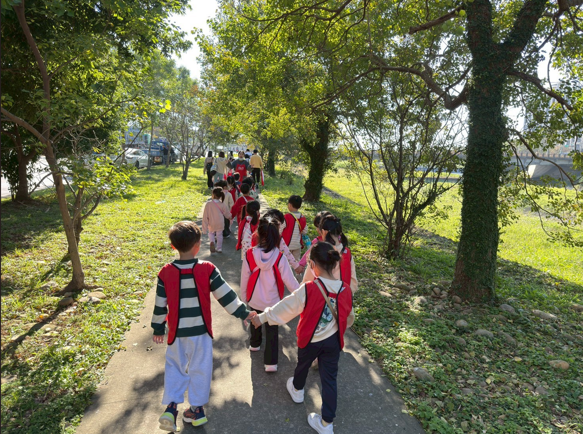 在班級志媽媽陪同下,孩子們踏出校園