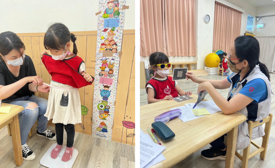每年衛生局提供中班108-109年兒童進行學齡前兒童健康檢查,篩檢內容包含生長評估(身高、體重、腹圍)